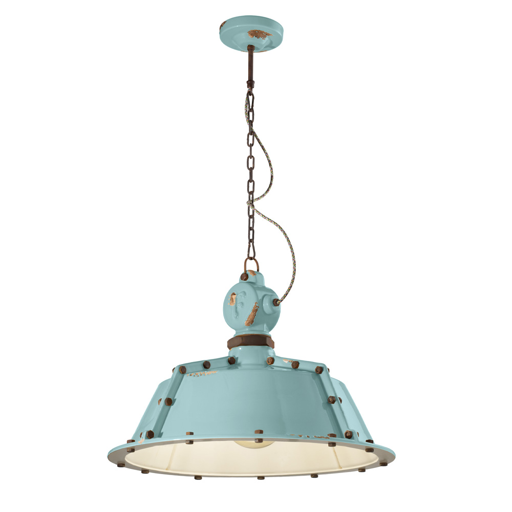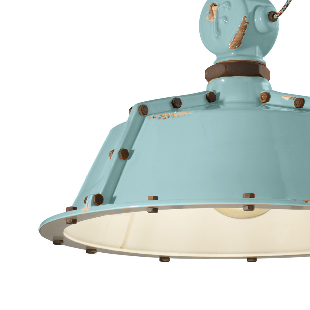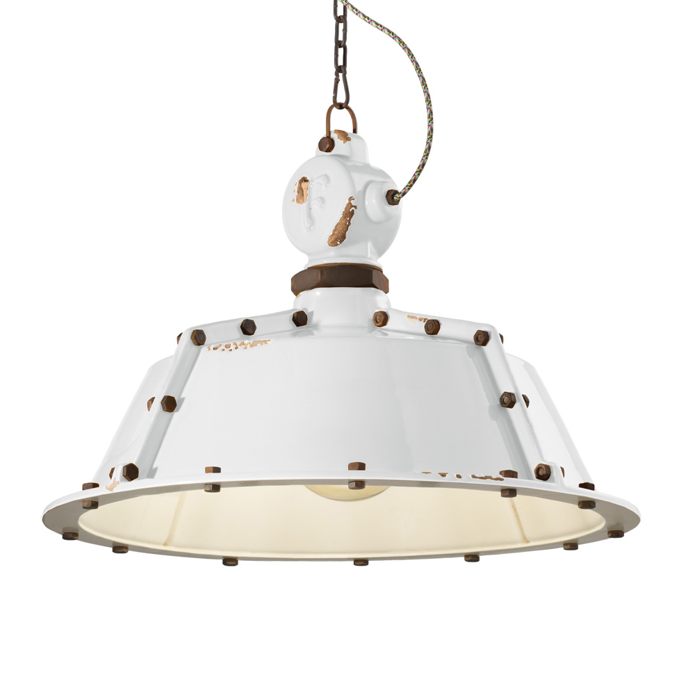 Ručně vyráběná závěsná lampa z keramiky a železa, průmyslový design vyrobený v Itálii společností Ferroluce.