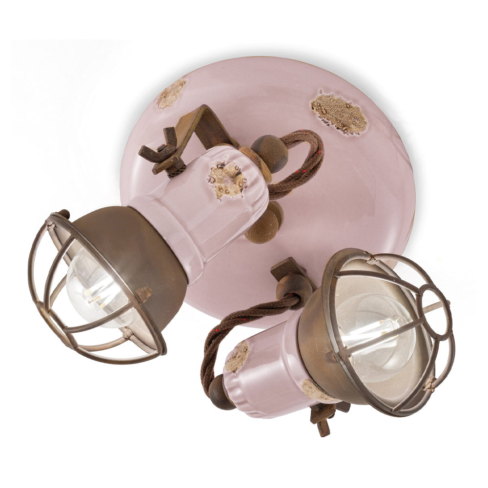 Stropní svítidlo 2 bodová svítidla v keramickém a železném průmyslovém designu italské výroby Ferroluce.