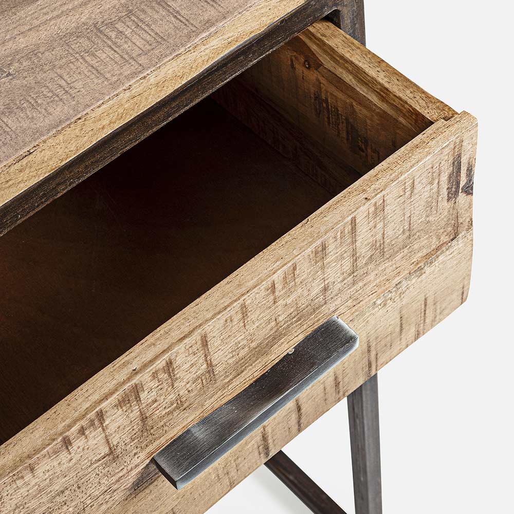 Psací stůl z oceli a akáciového dřeva se 2 zásuvkami v průmyslovém stylu.