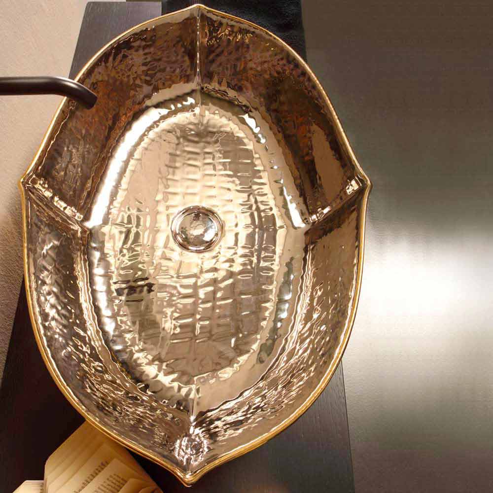 Platinové a zlaté keramické umyvadlo na desku v designu Oscar made Italy