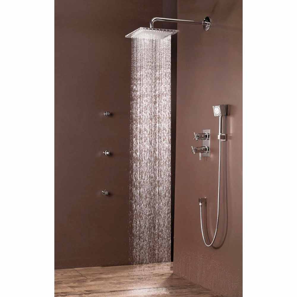 Kompletní sada: Samočisticí sprchová hlavice Dream Cube 300 x 300 mm s 90 ° mosazným sprchovým ramenem Ø 28 x 500, se stropní růžicí 1/2 M.