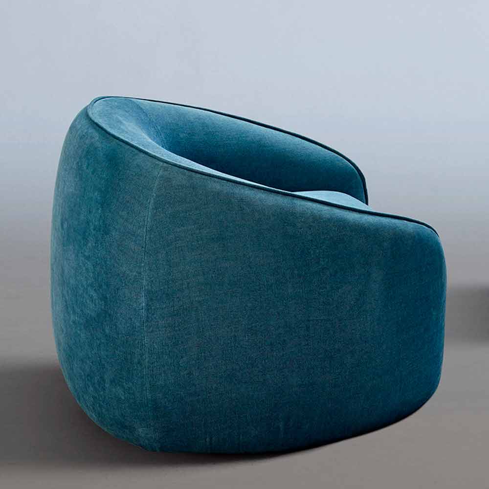 Moderní relaxační křeslo v oranžové nebo letecké modré, luxusní provedení oblých tvarů italské výroby.