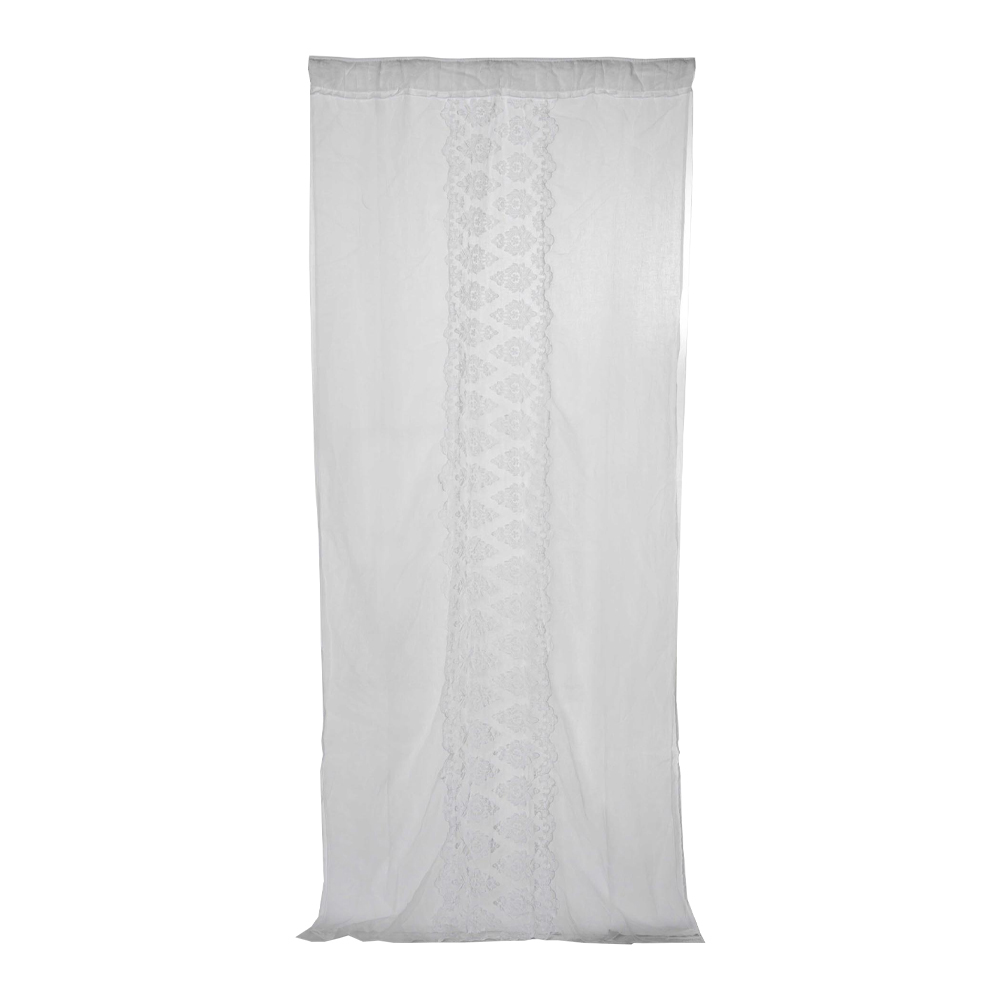 Hodnota tradice spojuje moderní životní styl s tímto přírodním bílým světlým plátěným závěsem s organzou a vertikální gotickou výšivkou ve střední části a předpokladem pro hůl v horní části s výzdobou z organzy.