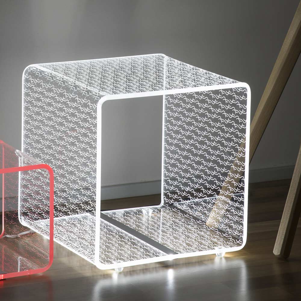 Čtvercová RGB led stolní lampa v průhledném akrylu 2 varianty vyrobené v Itálii.