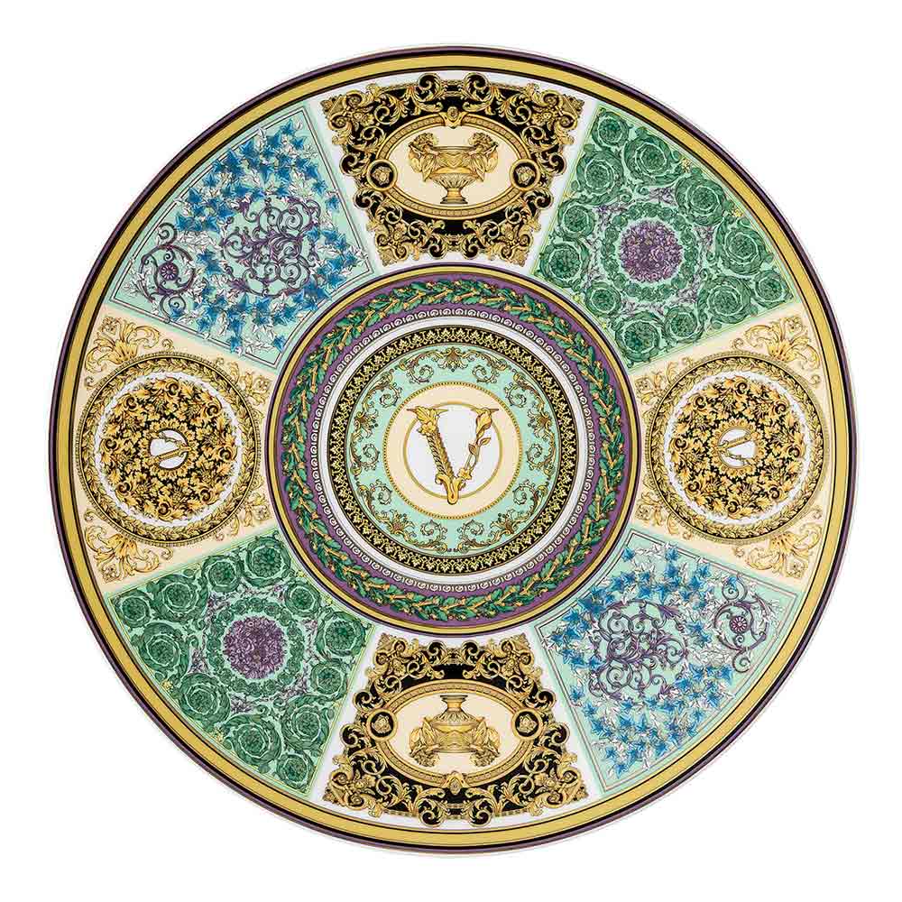 Prostírání Barocco Mosaic od Versaceho , vyrobené z ušlechtilého porcelánu , je skutečným mistrovským dílem italského umění a designu . Tento jedinečný kousek mistrně kombinuje řadu ikonických motivů z maisonu, včetně legendární Medúzy , barokních ornamentů a složitých mozaik v jasných barvách. Jeho rafinovaná estetika a zlaté detaily vytvářejí efekt naprosté opulentnosti a sofistikovanosti .