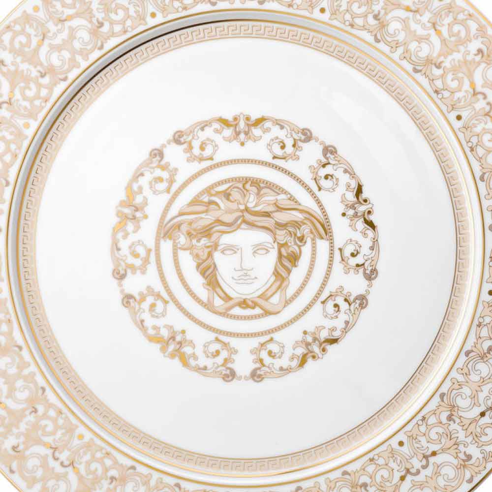 Medusa Gala, inspirovaná okázalostí a jedinečnou atmosférou slavnostních večeří, nově interpretuje tradiční motivy Versace v designu a výzdobě: ikonické zobrazení Medúzy se střídá s rafinovanými barokními ornamenty ve vzácném zlatém filigránu. Vzrušující kontrastní efekt mezi bělostí porcelánu a ryzím zlatem oživuje dokonalé místo, moderní a zároveň jedinečné.