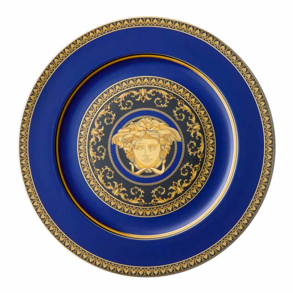 30cm porcelánový talíř od Versace je součástí elegantní moderní kolekce, která v kombinaci s fascinujícím a rafinovaným glamourem připomíná minulé éry, vyjádřená v odstínu jasně modré a nese název Medusa Blue.