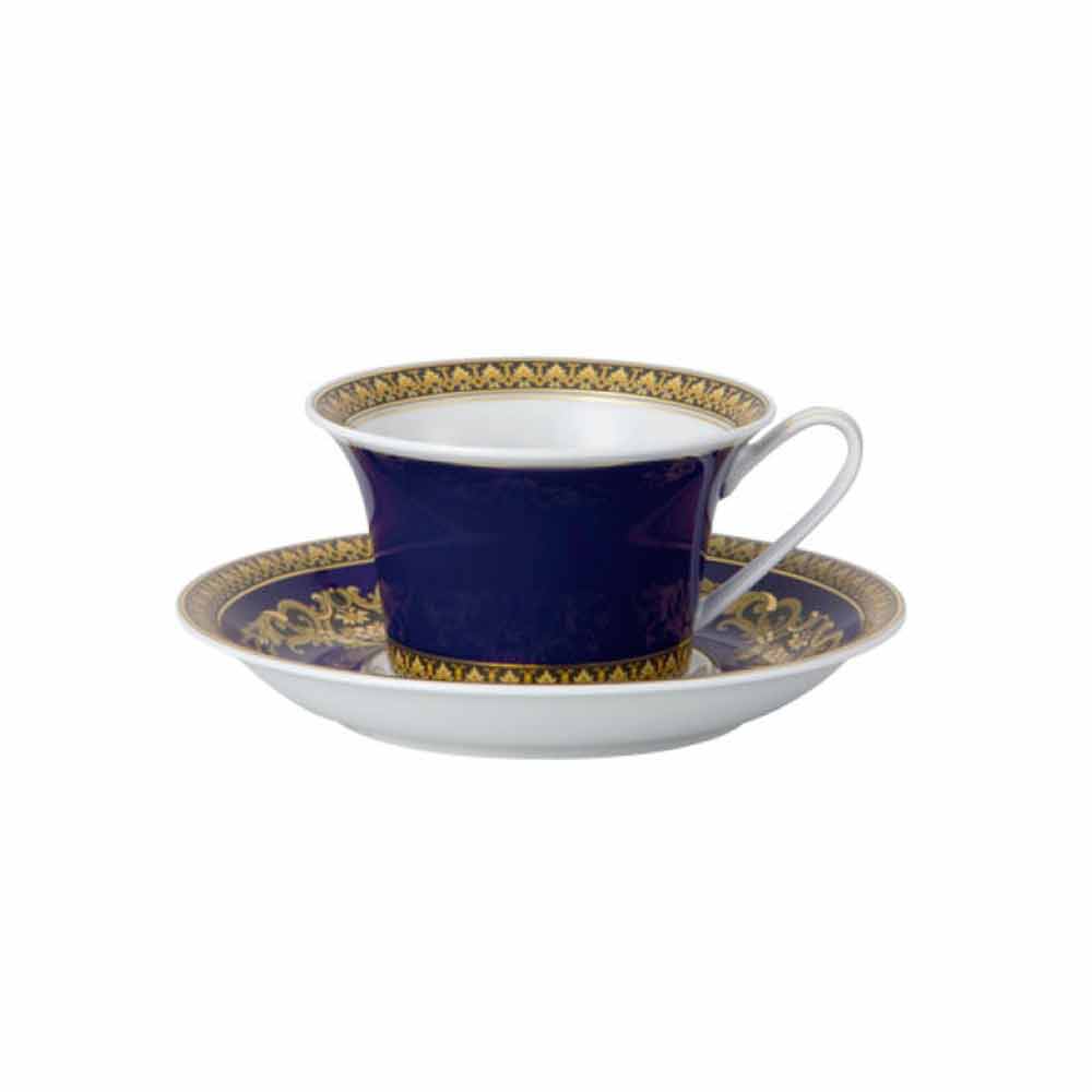 Velmi stylový čajový šálek s podšálkem od Versace je součástí elegantní moderní kolekce, která ve spojení s fascinujícím a rafinovaným glamourem připomíná minulé doby a je vyjádřena jasným odstínem modré a nese název Medusa Blue.