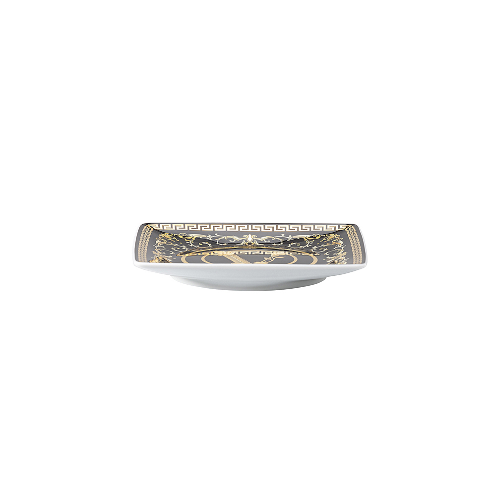 Ploché hranaté košíčky Virtus Gala od Versace jsou perfektní kombinací sofistikovaného designu a funkčnosti. Jsou vyrobeny z ušlechtilého porcelánu a vynikají elegantním lesklým pozadím zdobeným barokními zlatými detaily, mezi které patří ikonický symbol Versace „V“, emblém nadčasového stylu a luxusu .