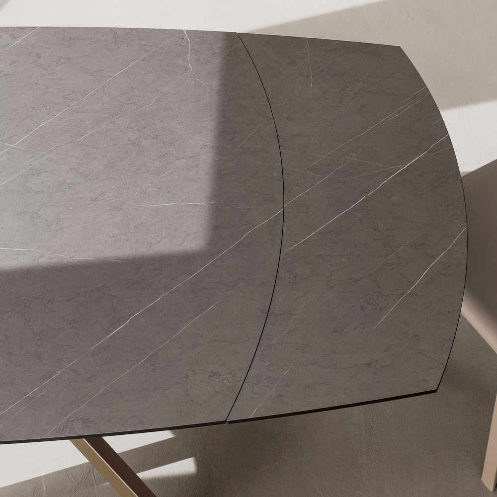 Vrchní deska z HPL je elegantní a odolná . Díky výsuvnému mechanismu se stůl snadno a plynule rozkládá, z kompaktního tvaru se dá rozložit do širšího, což je ideální pro pohodlné uvítání hostů.