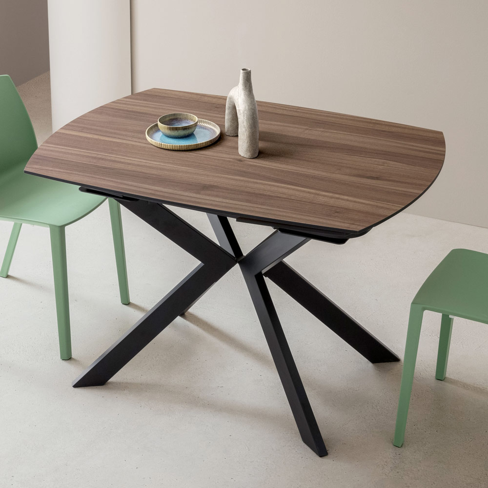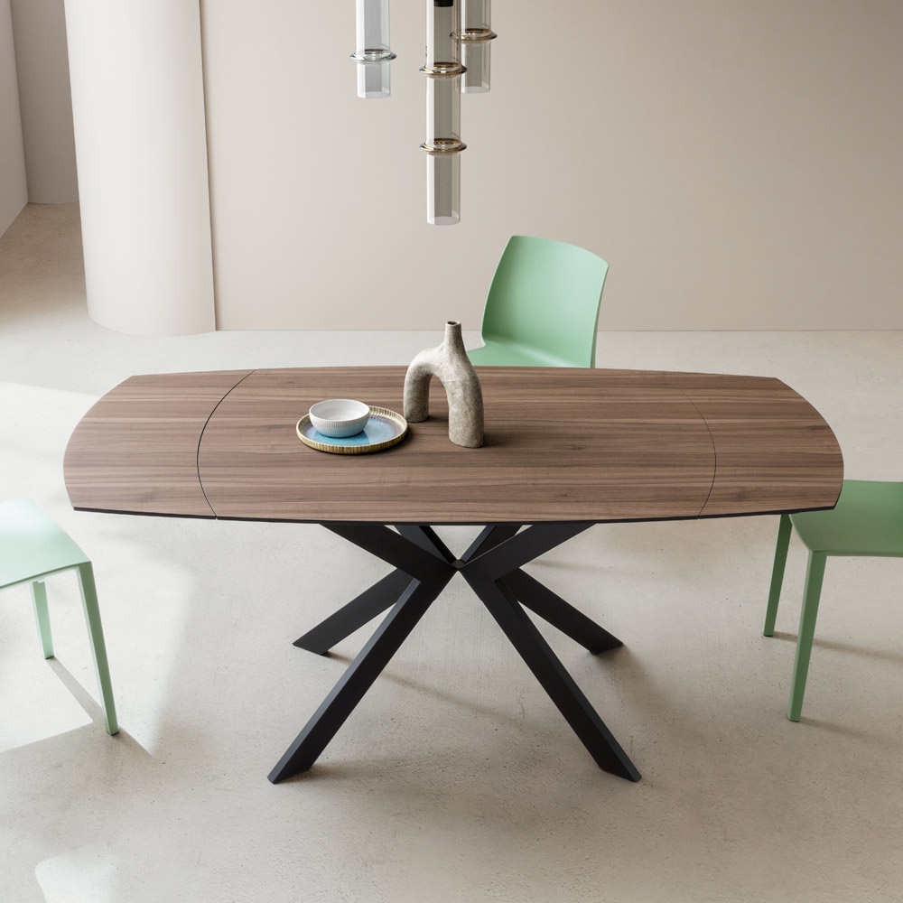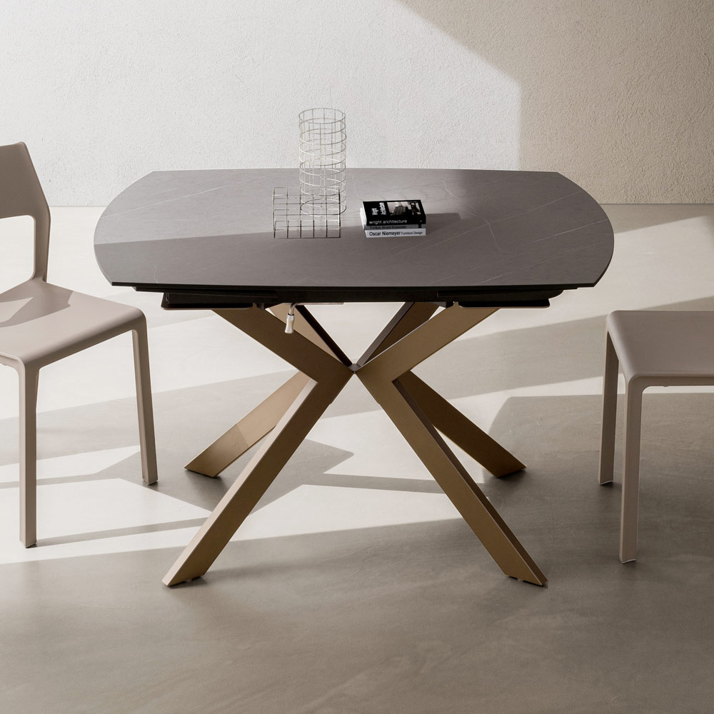 Lakovaná kovová základna s nohami ve tvaru hvězdy dodává stolu robustnost a charakter a proměňuje ho ve skutečného protagonistu prostoru.