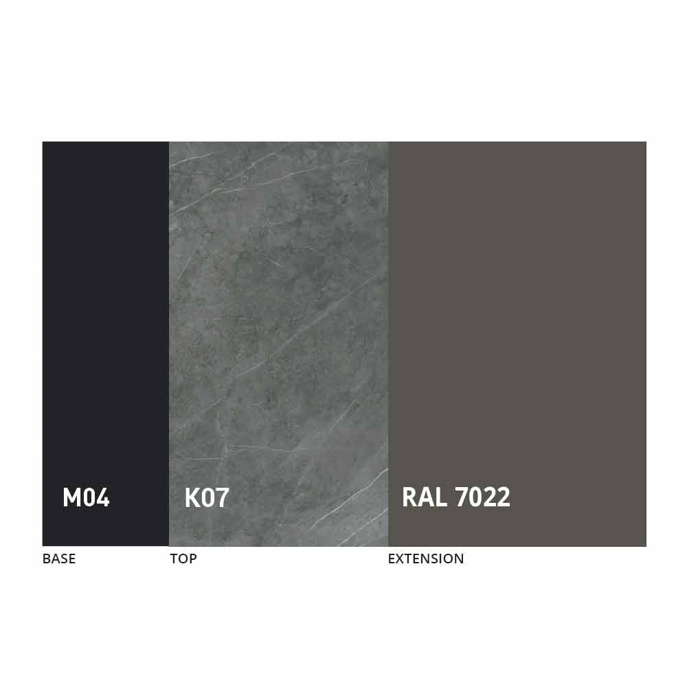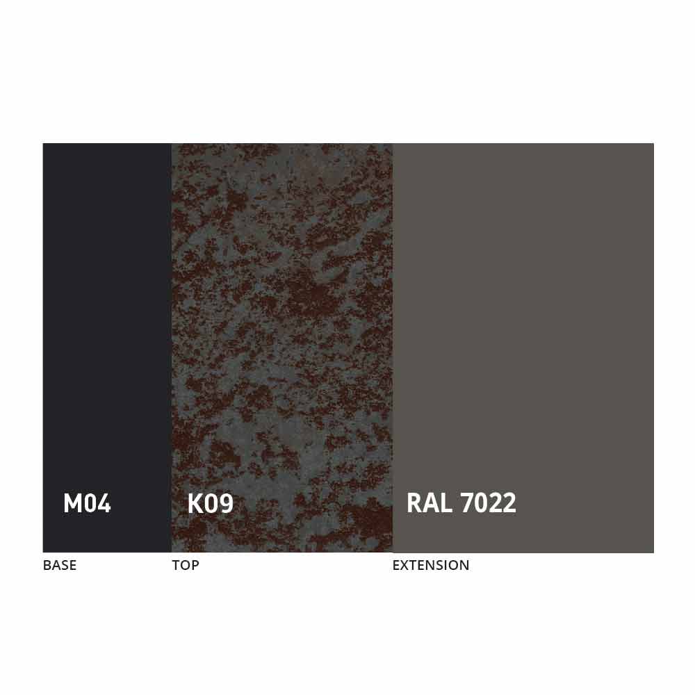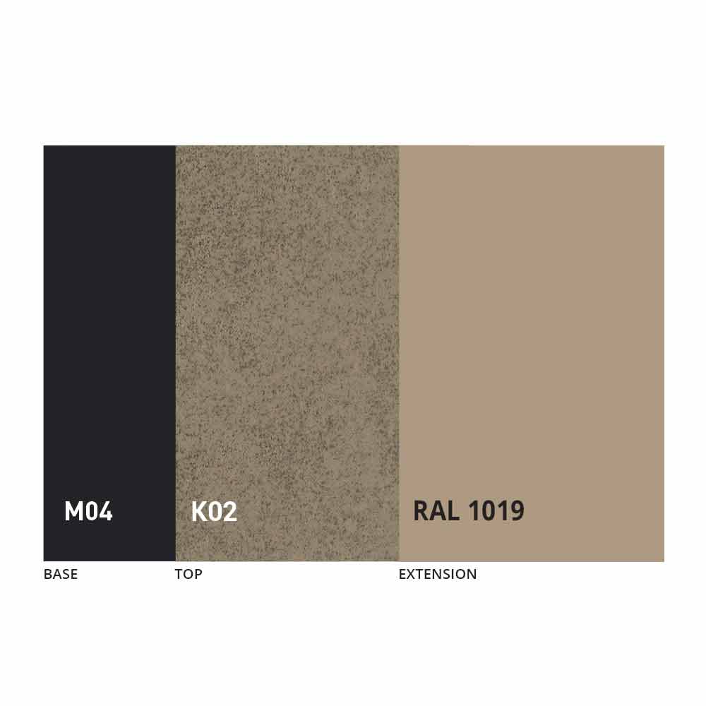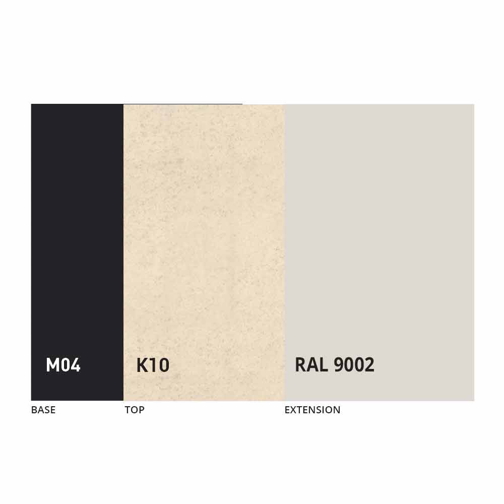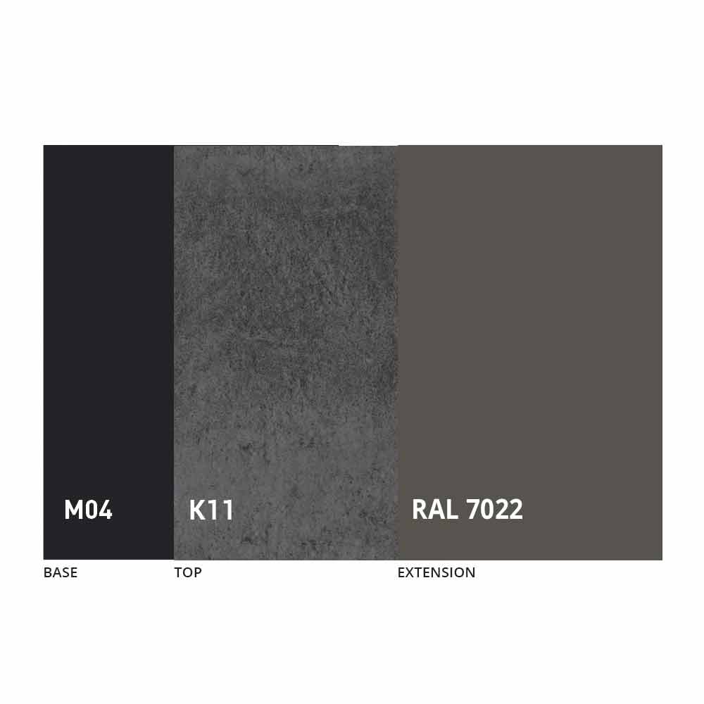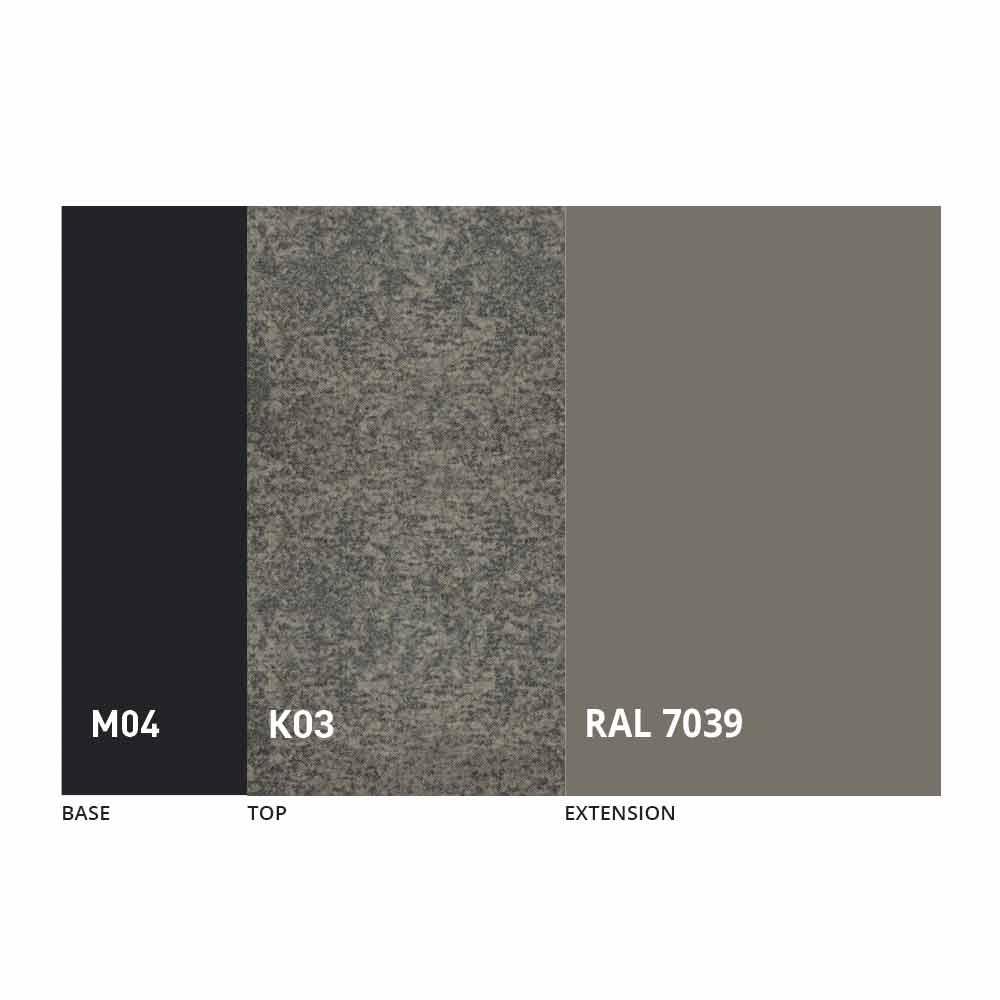 Desku a základnu stolu lze upravit pomocí různých materiálů a vzorových povrchových úprav nebo lakování RAL. Pro informace nás kontaktujte pomocí příslušného formuláře „