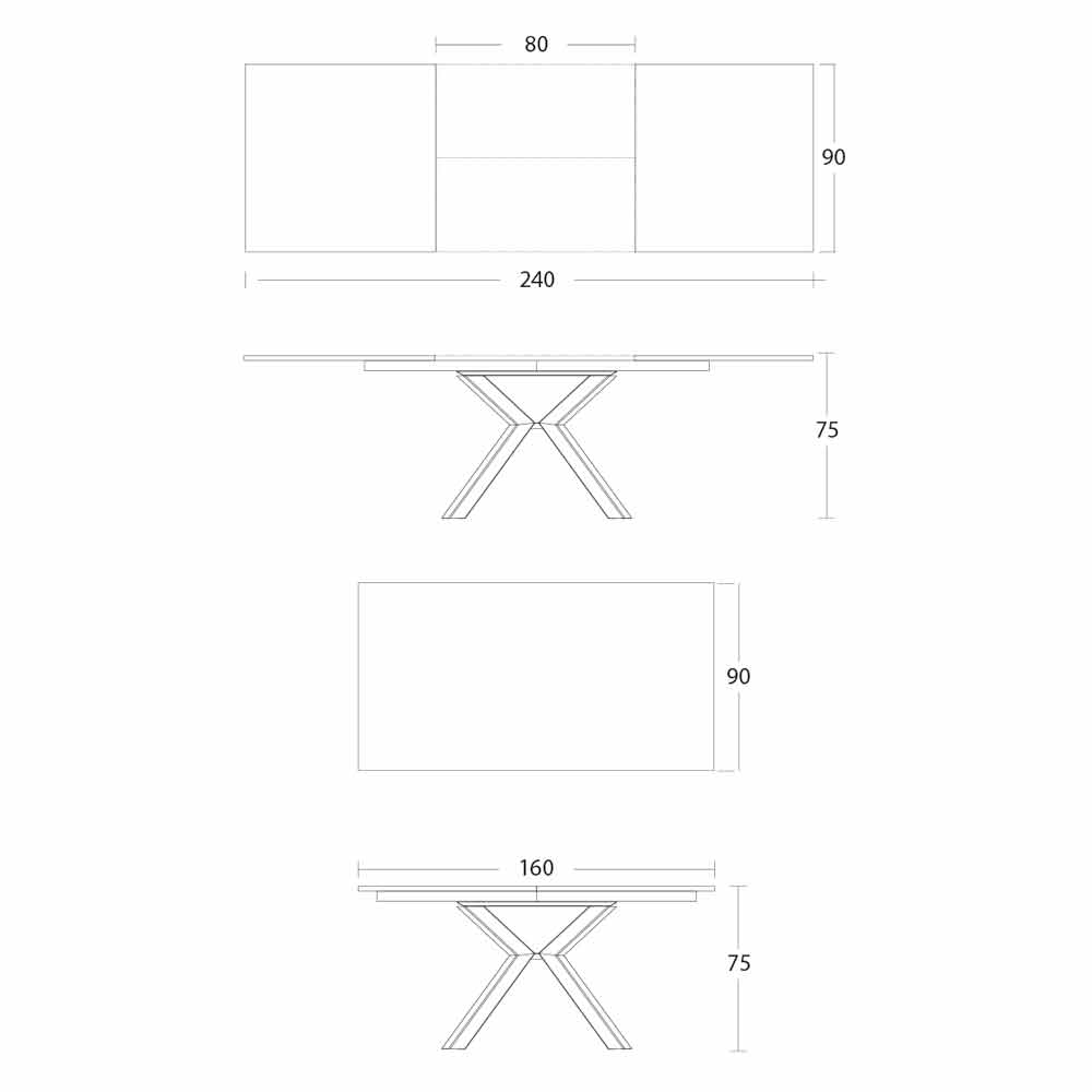 - D 160-240 x H 90 x V 75cm