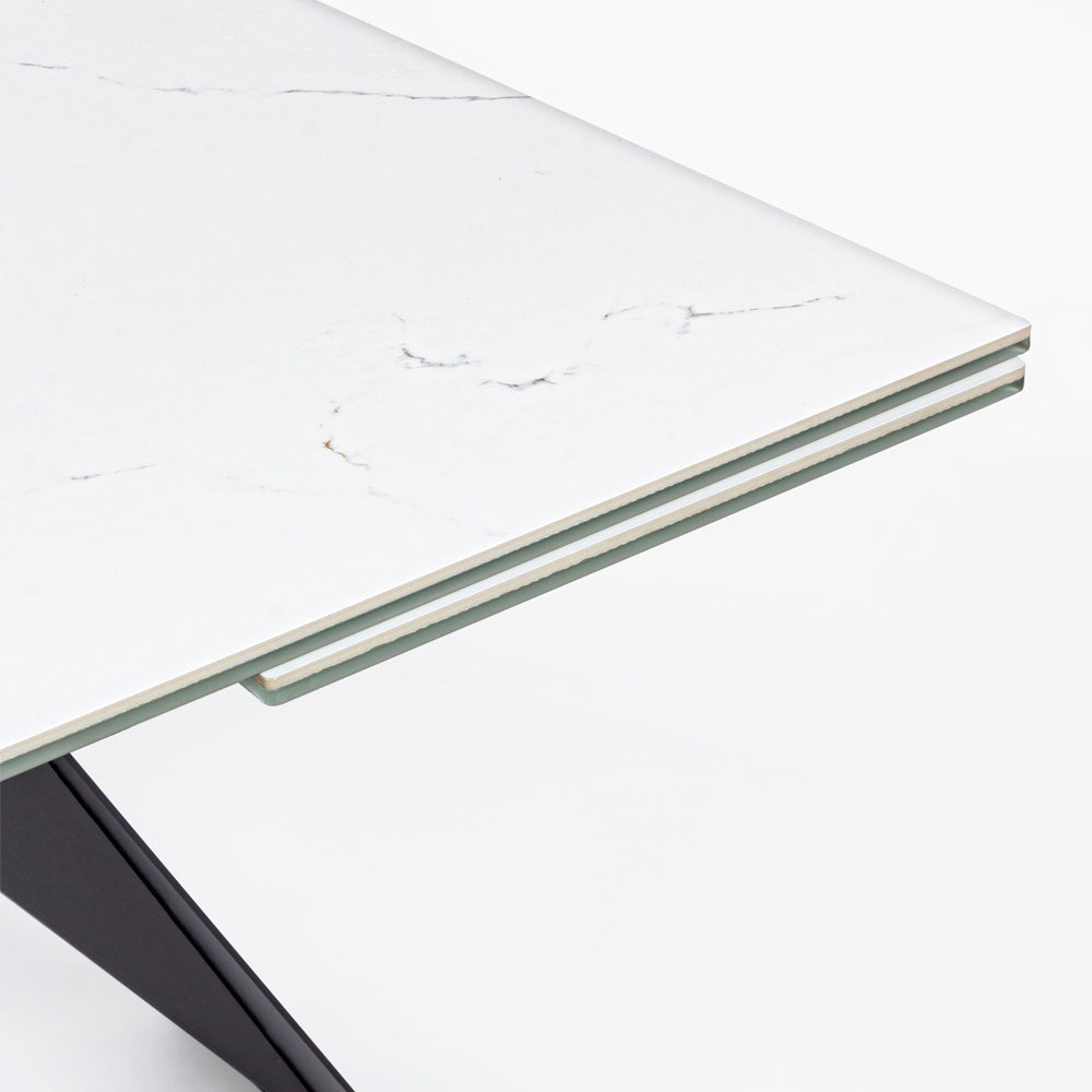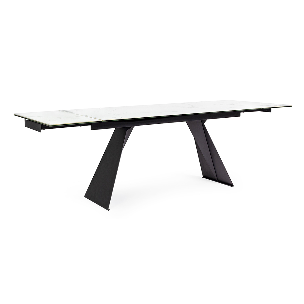 Rozkládací stůl s kovovou základnou a keramickou deskou v mramorovém provedení - Lombo