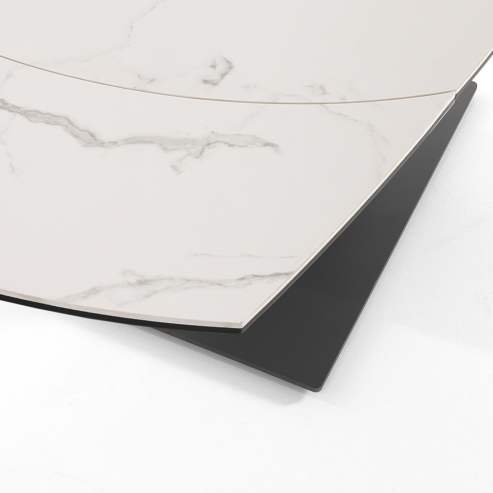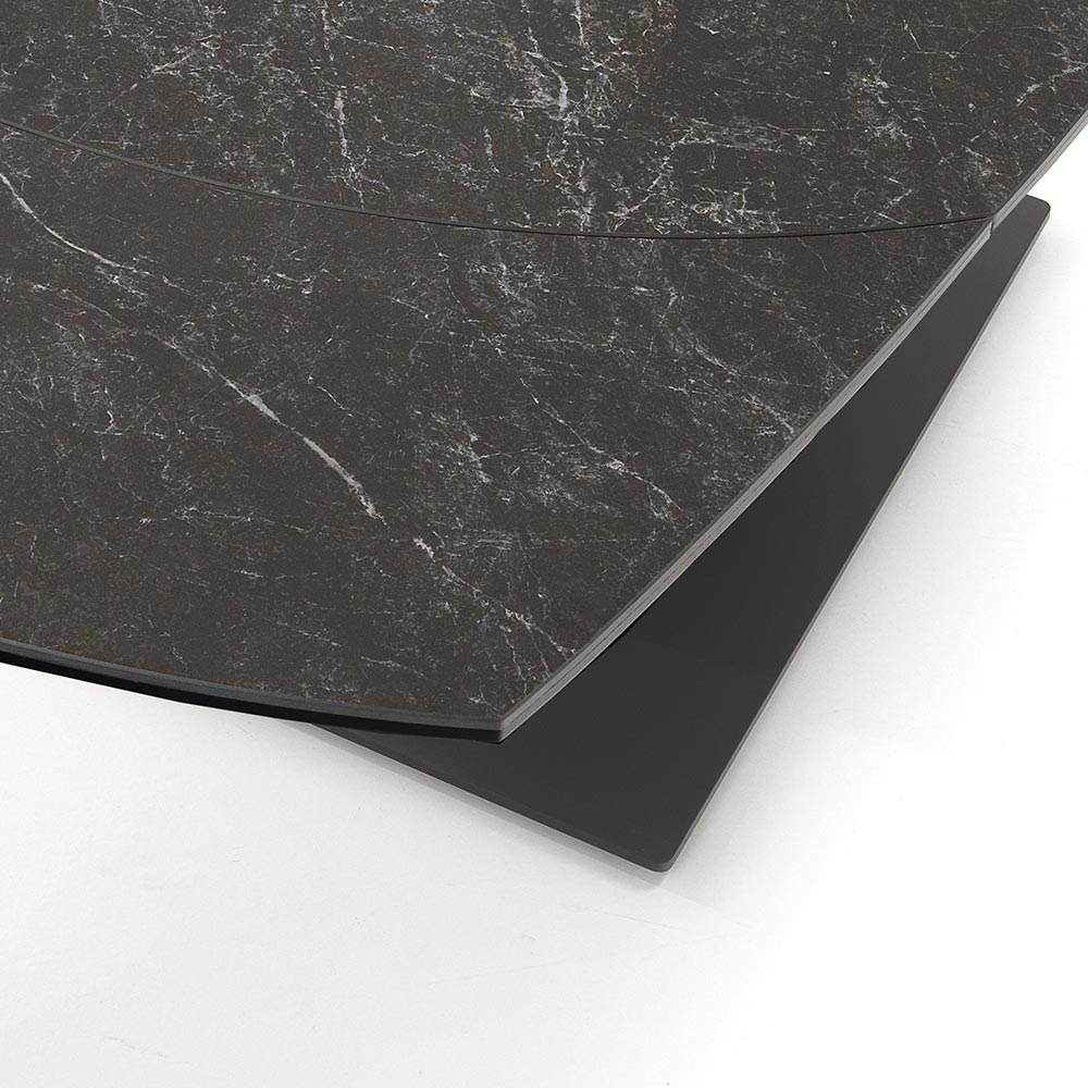 otočným mechanismem může stůl dosáhnout maximální délky 180 cm, což umožňuje pojmout větší počet hostů na skvělé obědy a večeře s přáteli. Dokonalá kombinace elegance keramiky a impozantního detailu ocelové základny vytváří kus nábytku s