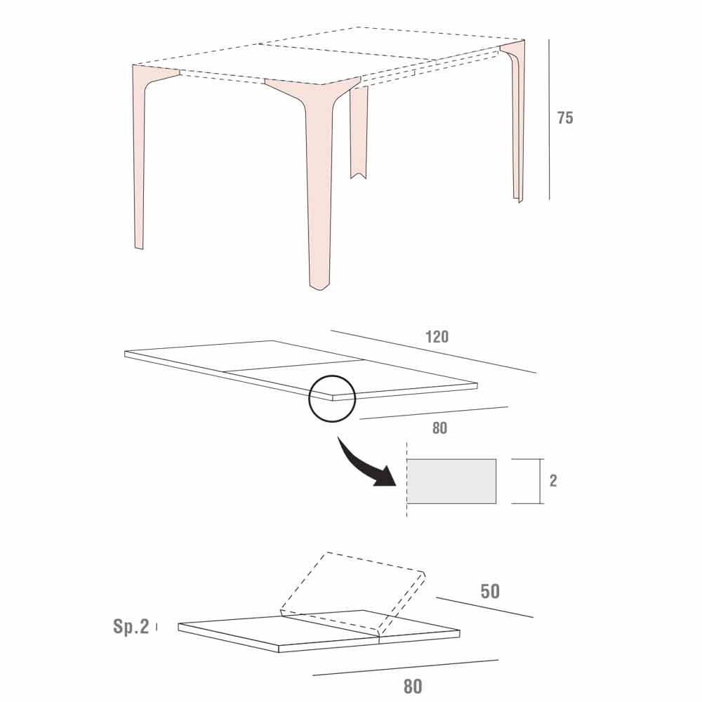 jednoduchými a minimálními liniemi se vyznačuje možností prodloužení plochy stolu až na maximálních 222 cm díky prodloužení ve stejné barvě jako deska, která umožňuje ubytovat větší počet hostů na skvělé obědy nebo večeře ve společnosti a zvýšit tak jeho