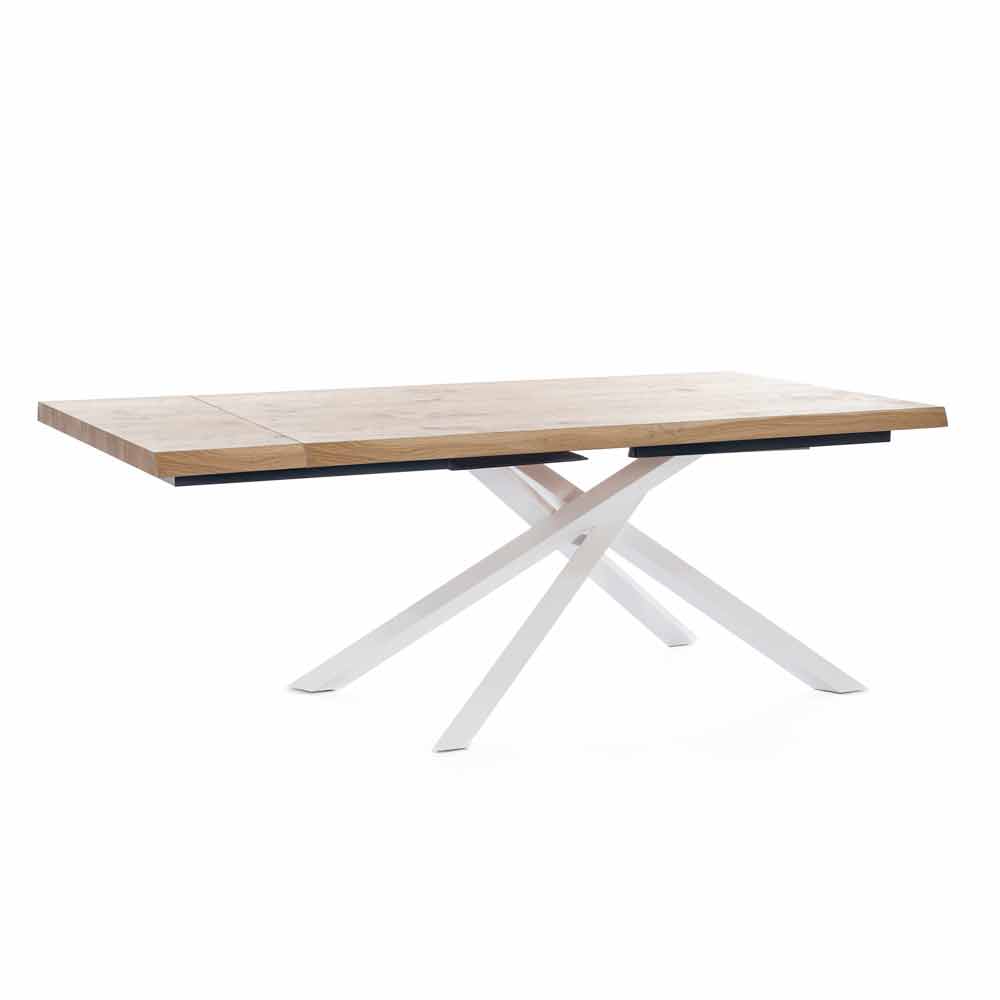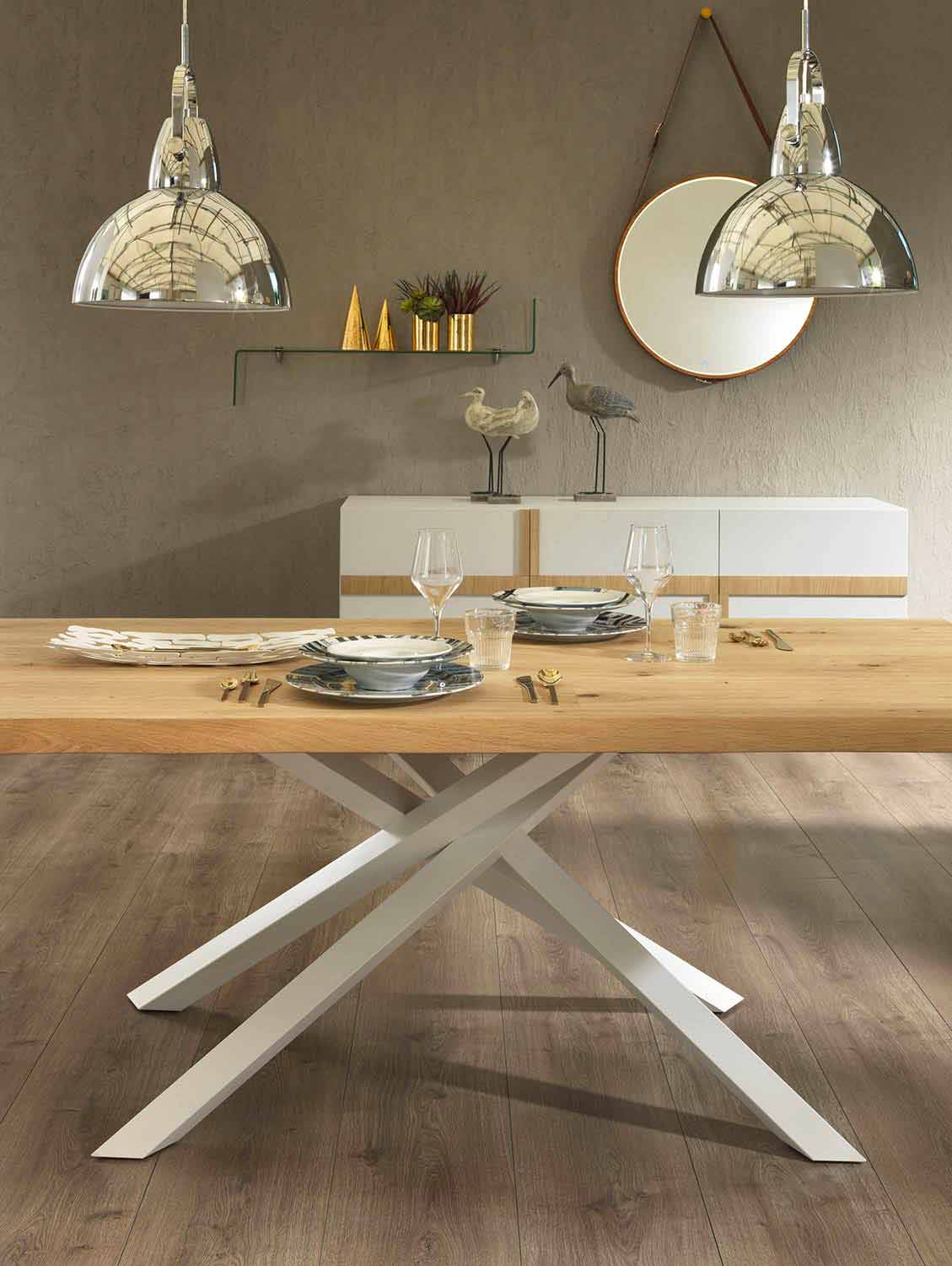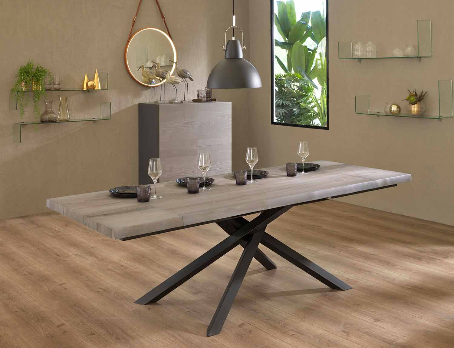 Xino je vyrobeno z lakovaného kovového základu, který je k dispozici ve dvou barvách, a dřevěného povrchu, který je k dispozici také ve dvou různých povrchových úpravách, a vyznačuje se také možností prodloužení až na 240 nebo 300 cm díky vnějším nástavcům také v šedé popelové dýze, tedy získat více prostoru a umožnit vám hostit přátele a příbuzné, aniž byste se museli vzdát pohodlí.