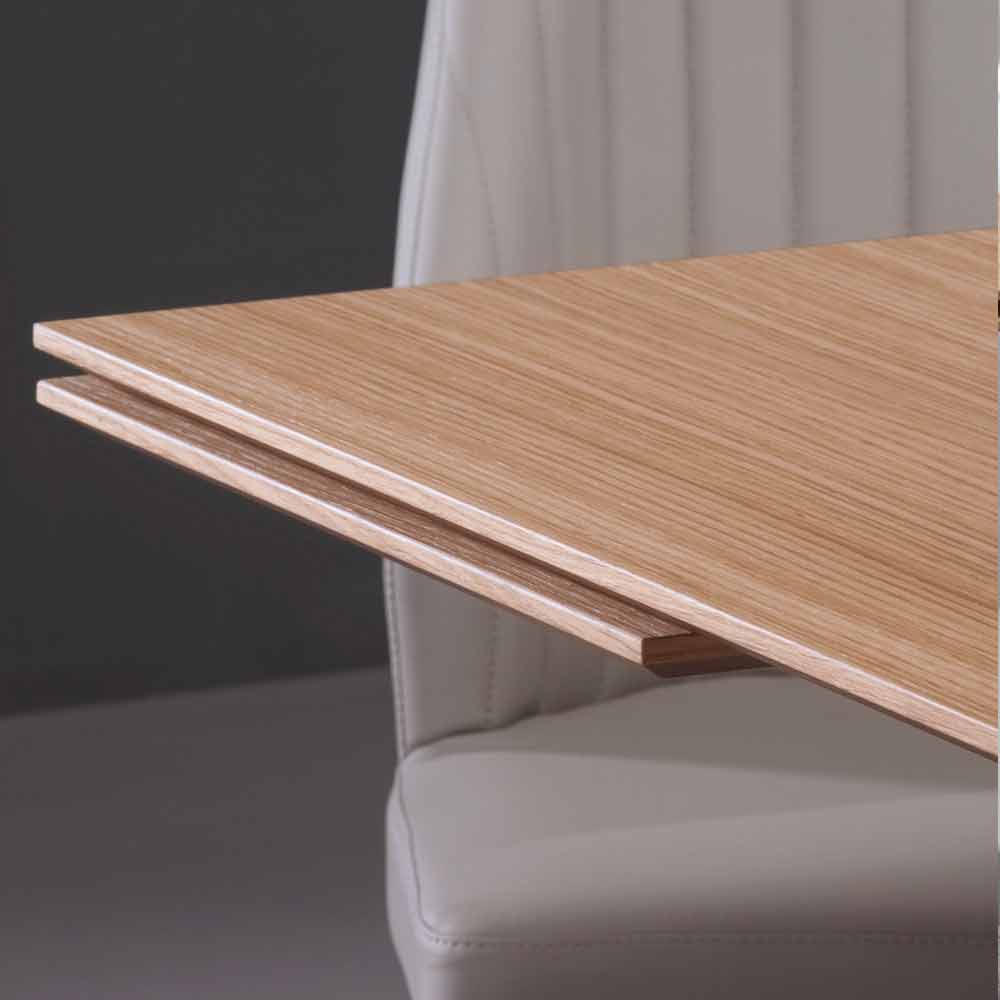 Systém prodlužovacích vodítek je vyroben z kovu a prodlužovací prvky jsou uloženy uvnitř samotného stolu.