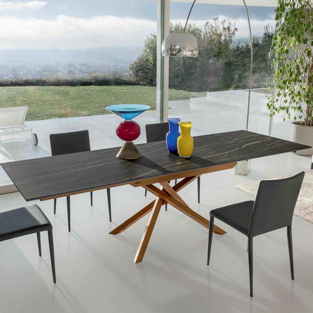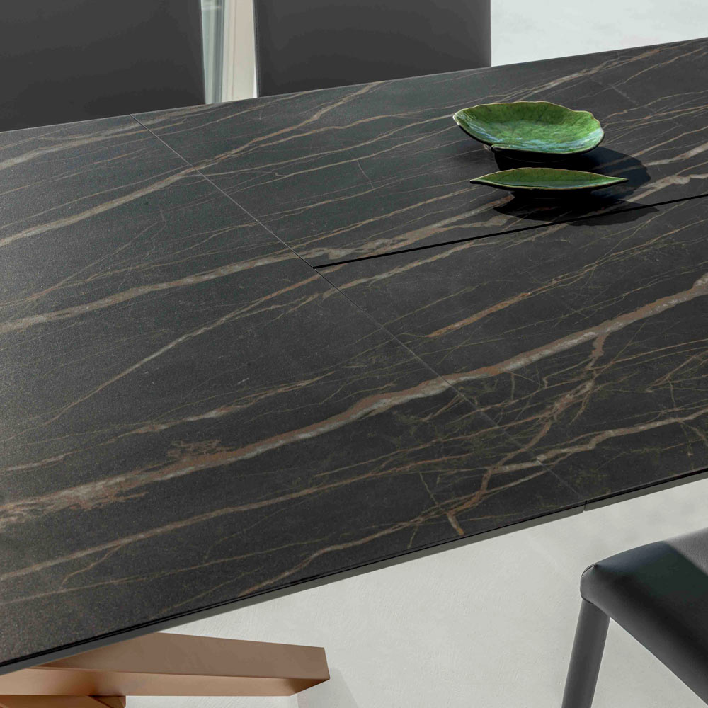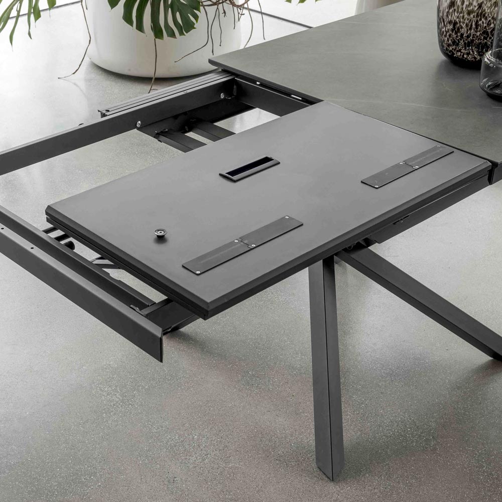 Jeho skutečná krása spočívá v jeho pružnosti. Zavřený, je to střízlivý a elegantní stůl ; otevřená, promění se ve velkorysou přijímací plochu . Ideální pro večeře s přáteli, kolektivní pracovní setkání nebo jako všestranný prostor pro vaši rodinu, přizpůsobí se aktuálním potřebám s plynulým a snadným přechodem.