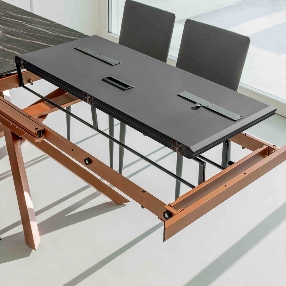 Stůl představuje dokonalou syntézu mezi špičkovým inženýrstvím a estetickým designem. Nejedná se pouze o rozkládací stůl, ale o funkční umělecké dílo určené pro ty, kteří nechtějí dělat kompromisy mezi stylem a prostorem.