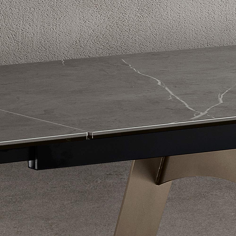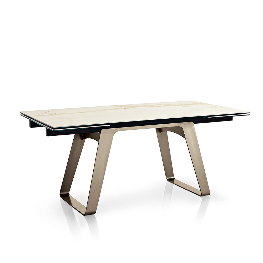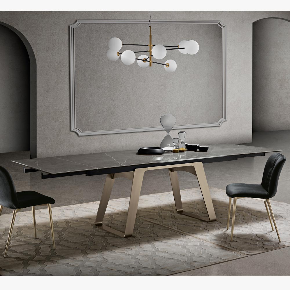 Tento stůl, navržený pro ty, kteří oceňují nekompromisní funkčnost a krásu Made in Italy , představuje dokonalé spojení umění a techniky. Důmyslná možnost rozšíření zajišťuje, že se dokáže přizpůsobit každé situaci, od každodenních rodinných večeří až po elegantní recepce.