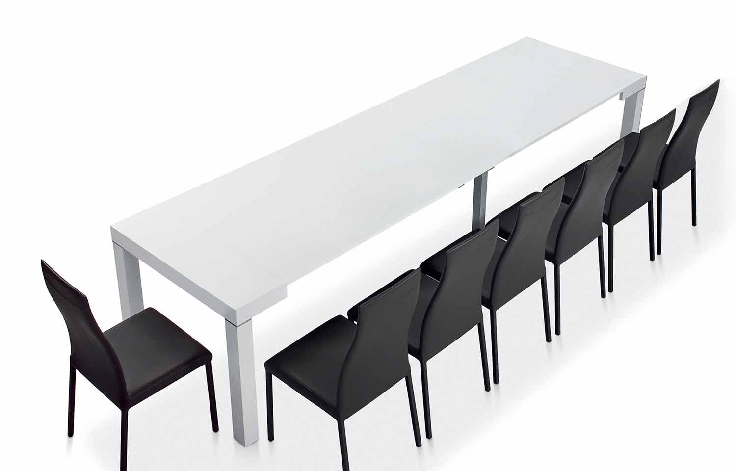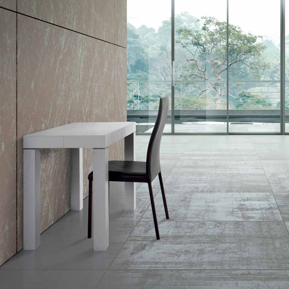 Výsuvná konzola moderního designu až pro 16 sedadel z laminovaného dřeva ručně vyráběná v Itálii.