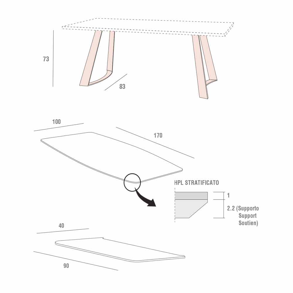Poznámka : deska stolu a základna jsou k dispozici v široké škále různých materiálů a povrchových úprav. Kontinuita zrna mezi vrcholem a nástavcem není zaručena