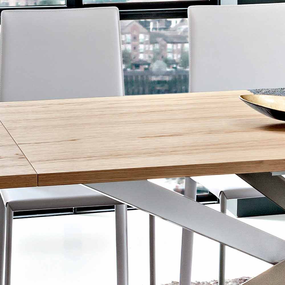 Rozkládací kuchyňský stůl s dubovou dýhovanou deskou a kovovými nohami Made in Italy.