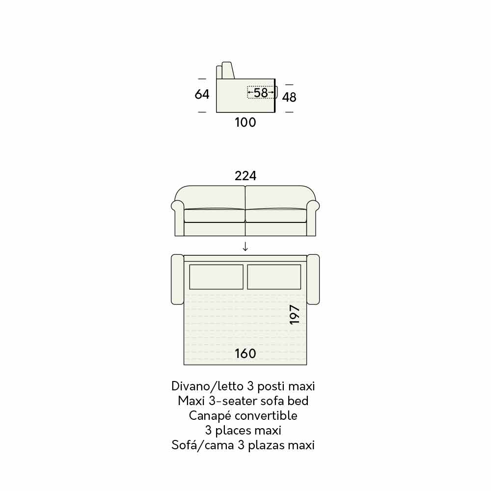 - L 224 x P 100 x H 93 cm (matrace: L 160 x P 197 x H 14 cm).