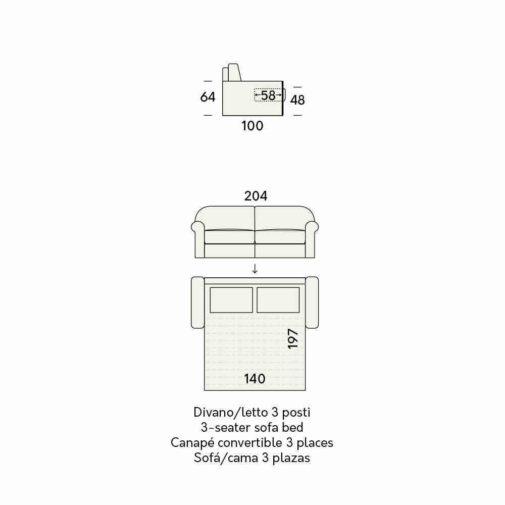 - L 204 x P 100 x H 93 cm (matrace: L 140 x P 197 x H 14 cm);