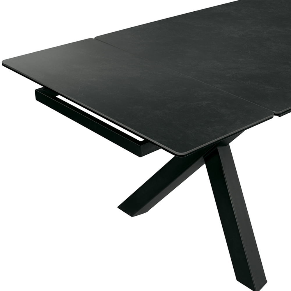 Tento moderní stůl je navržen tak, aby vylepšil jídelní kout elegantním a výrazným stylem. Keramická a skleněná deska kombinují estetiku a funkčnost a nabízejí povrch odolný vůči poškrábání, teplu a skvrnám, ideální pro každodenní použití bez kompromisů v oblasti elegance.