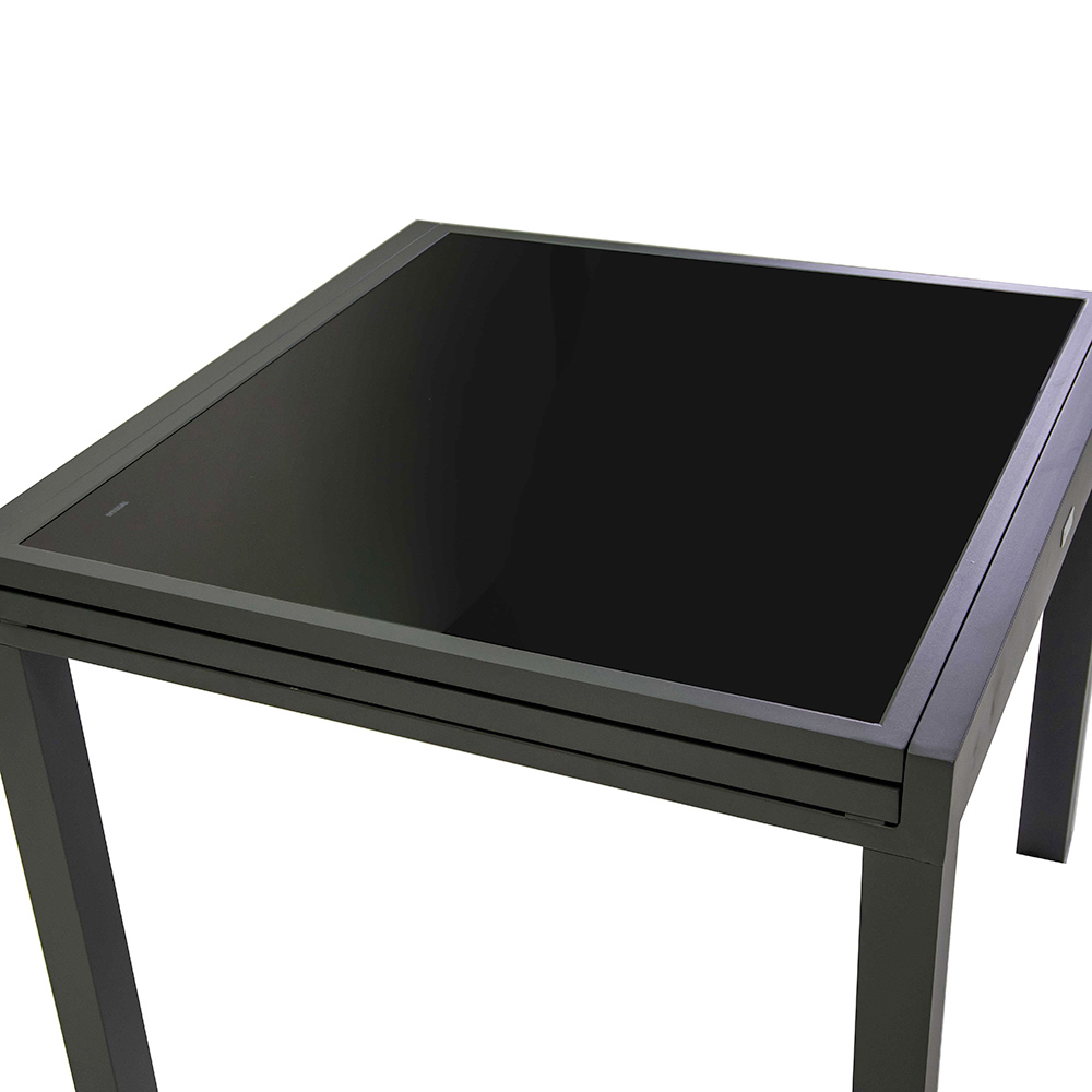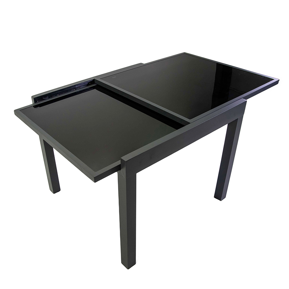 Tento rozkládací hliníkový stůl s deskou z tvrzeného skla je ideální pro ty, kteří hledají funkčnost a styl v jednom výrobku. Tento elegantní a moderní stůl vyniká povrchovou úpravou, která se dokonale přizpůsobí jak vnitřnímu, tak venkovnímu prostředí.