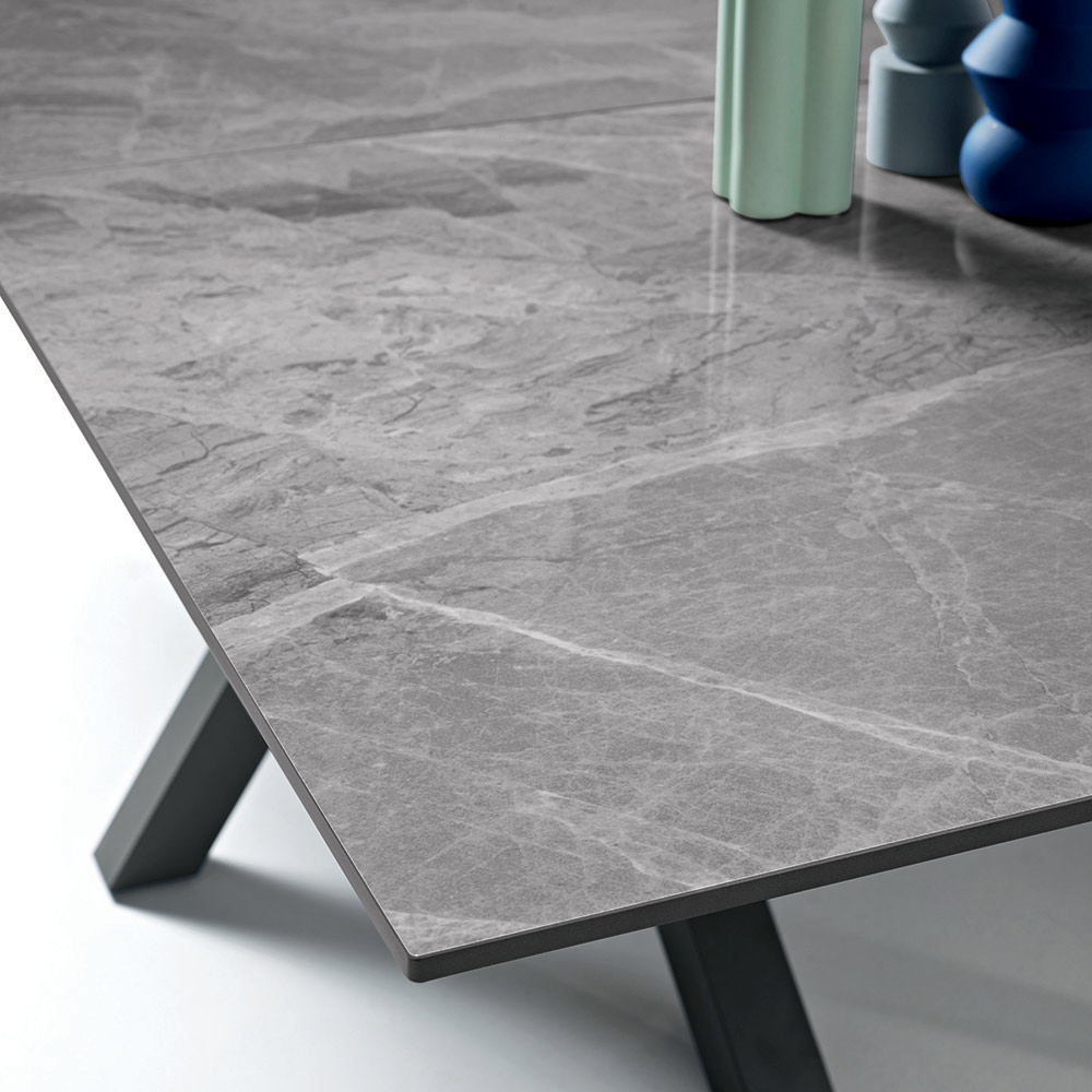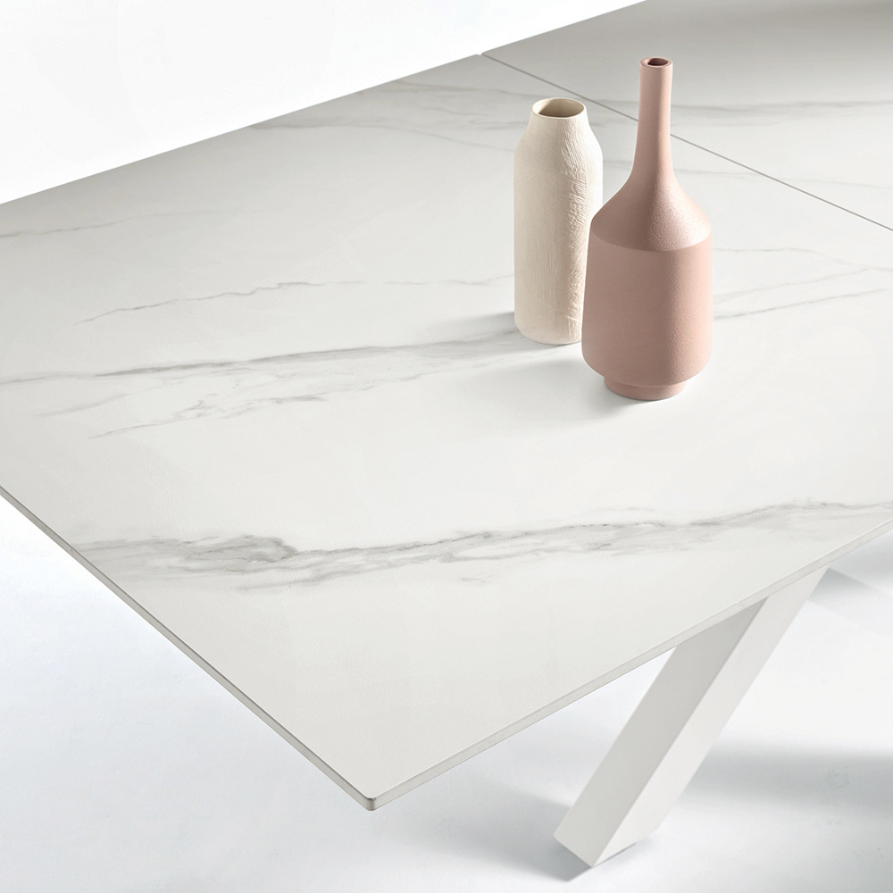 Centrální výsuvný systém umožňuje rychlé rozšíření plochy stolu, takže je ideální jak pro každodenní použití, tak pro zábavu. K dispozici v různých kombinacích povrchové úpravy vrchní a spodní části, takže se snadno přizpůsobí různým stylům a paletám.
