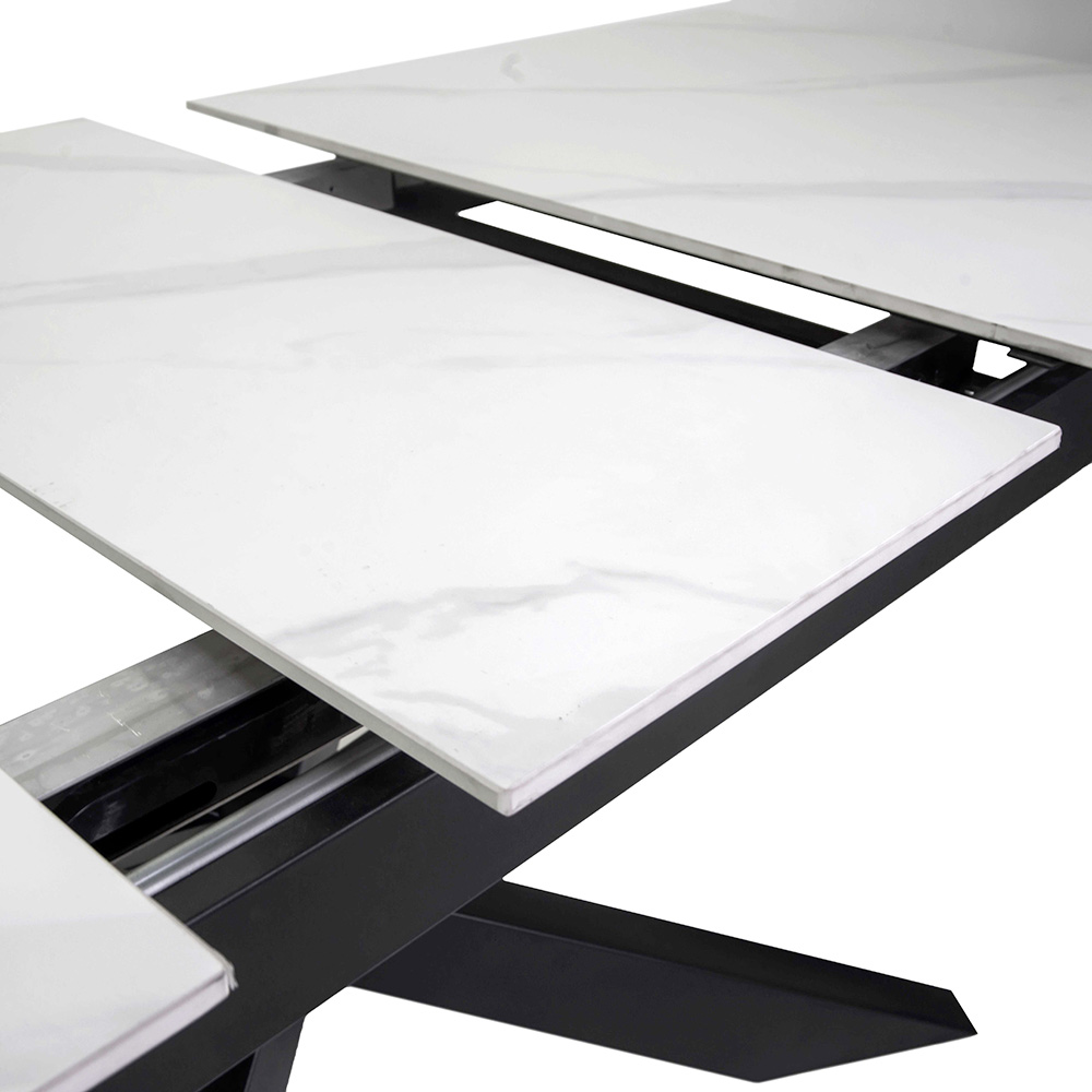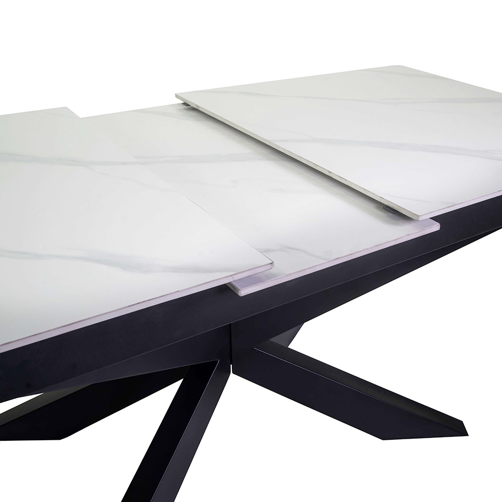 Spékané kamenné desky zajišťují nejen odolnost a snadné čištění , ale díky své přirozené struktuře a elegantní povrchové úpravě také dodávají moderní nádech luxusu. Tento stůl se dokonale hodí do jakéhokoli prostředí: od obývacího pokoje přes jídelnu až po kontraktní prostory.