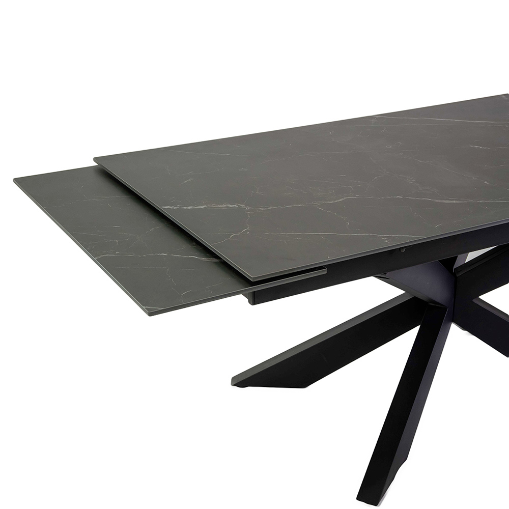 Spékané kamenné desky zajišťují nejen odolnost a snadné čištění , ale díky své přirozené struktuře a elegantní povrchové úpravě také dodávají moderní nádech luxusu. Tento stůl se dokonale hodí do jakéhokoli prostředí: od obývacího pokoje přes jídelnu až po kontraktní prostory.