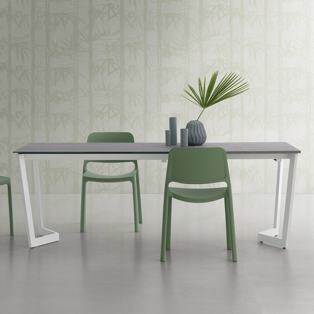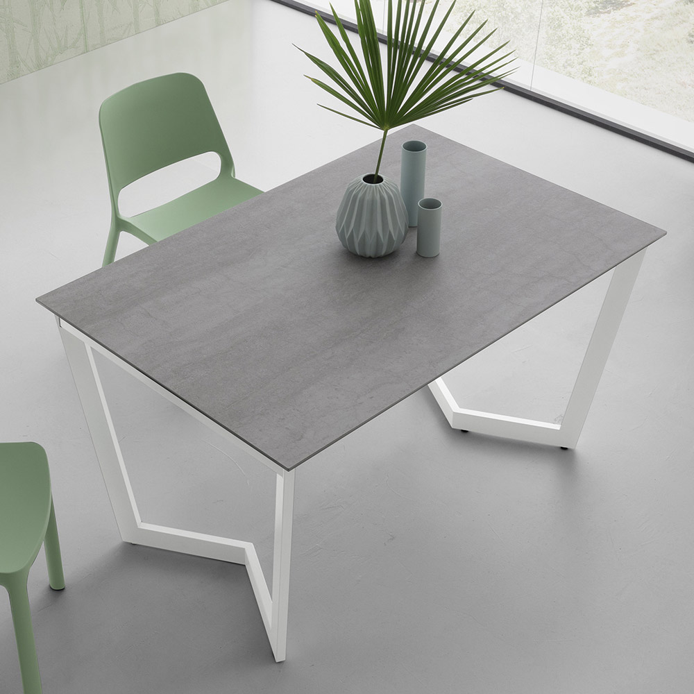 Rozkládací kuchyňský stůl z laminované keramiky s kovovou základnou Made in Italy.