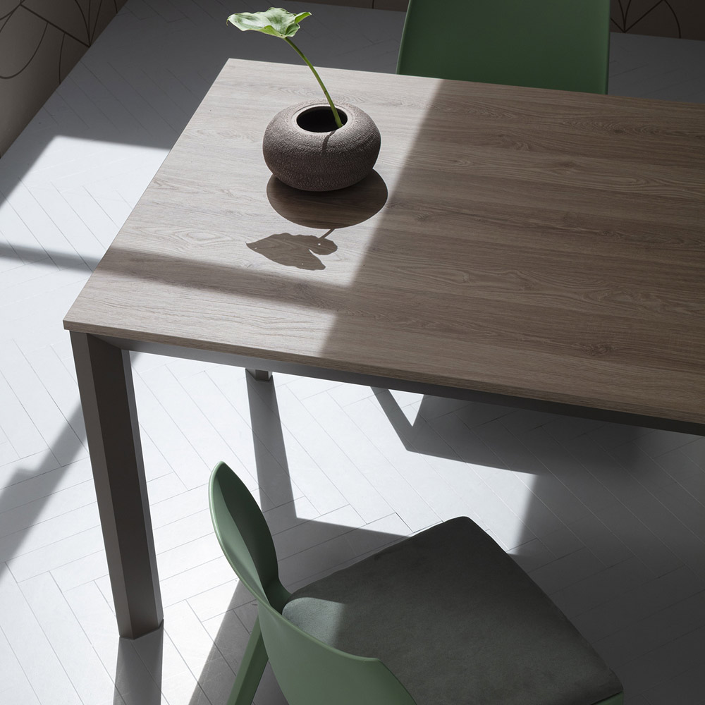 Rozkládací kuchyňský stůl s hpl deskou a hliníkovými nohami Made in Italy.