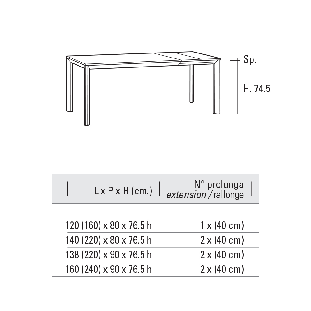 - D 140/220 x H 80 x V 76,5 cm (2 nástavce);