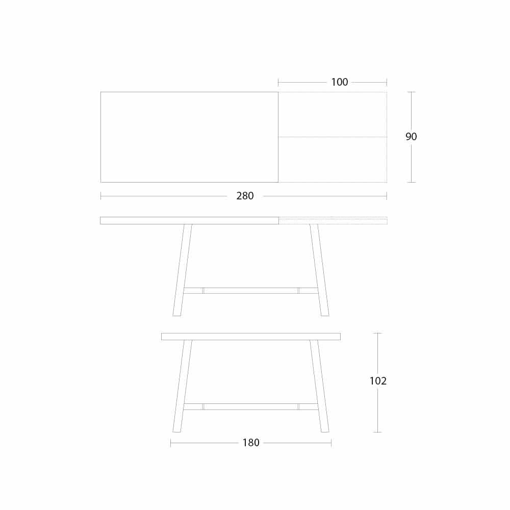 rozkládací jídelní stůl obdélníkového tvaru zaujme svým charakteristickým designem variabilní délky.