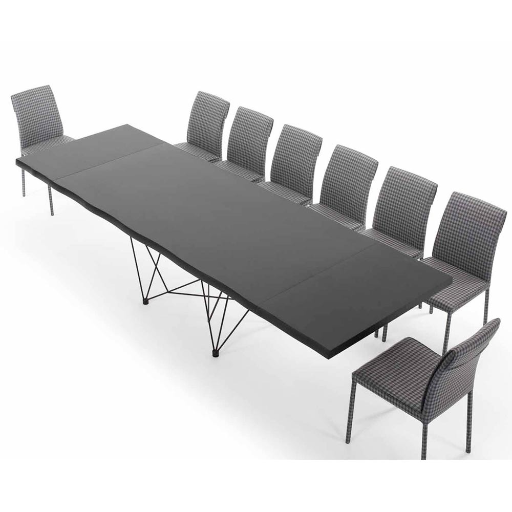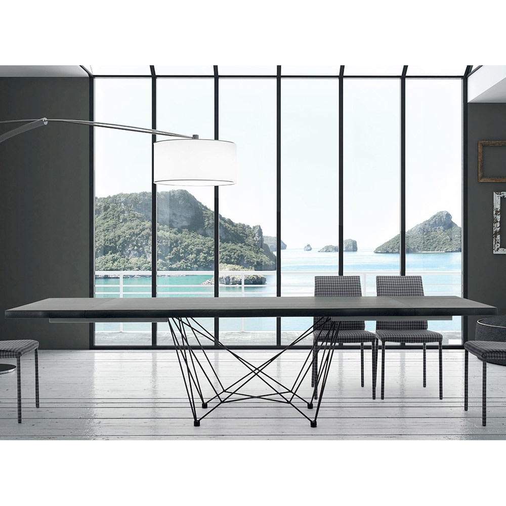 Moderní rozkládací stůl až na 300 cm s dýhovanou dřevěnou deskou a černou ocelovou podnoží vyrobený v Itálii.