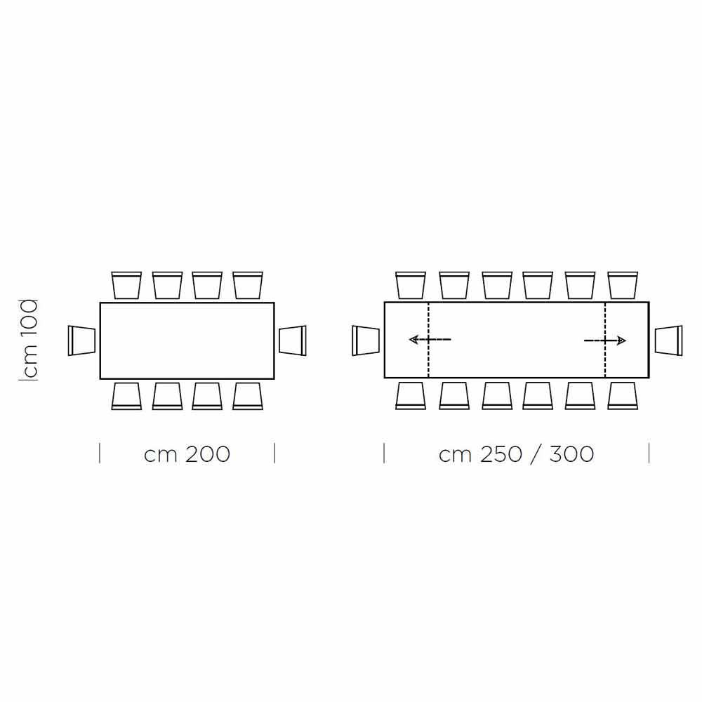 prodloužením po 40/50 cm umožňuje prodloužení délky až na max. 300 cm, pojme až 14 osob, což se osvědčuje jako zařizovací předměty. řešení zvláště vhodné pro ty, kteří rádi vítají hosty doma na obědy a večeře s přáteli.