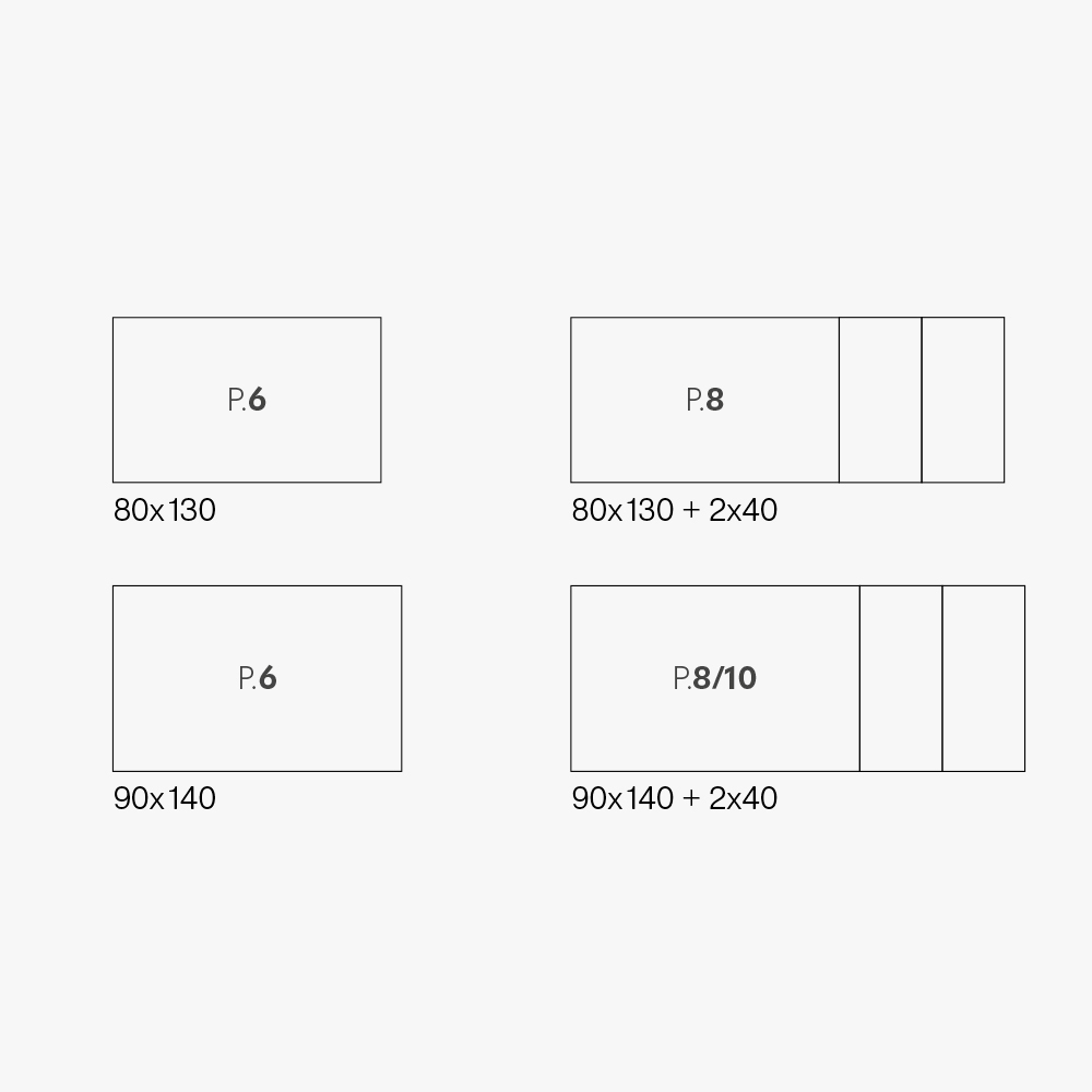 Dostupné velikosti:- délka 130/210 cm x hloubka 80 cm x výška 75,5 cm - 2 nástavce po 40 cm
