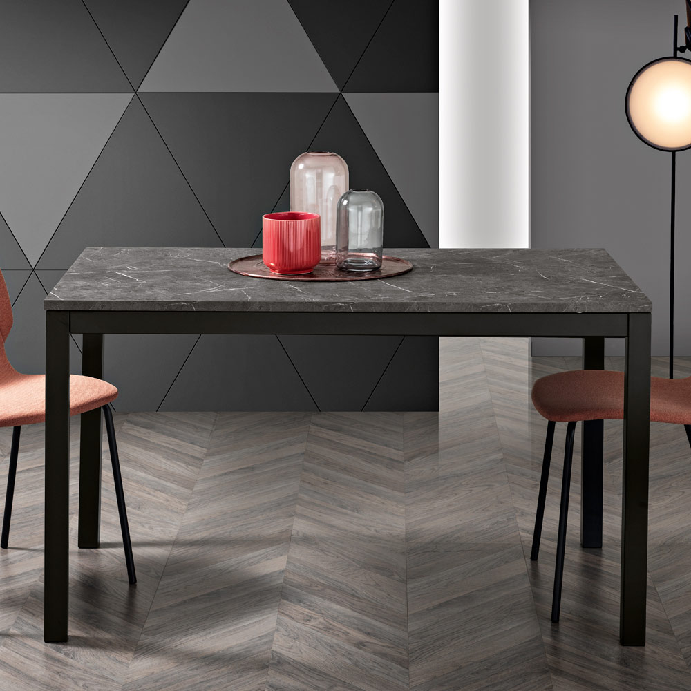 vyroben v Itálii. Objevte současné kouzlo a nadčasovou sofistikovanost tohoto jídelního stolu . Majestátní melaminový povrch podpořený robustní konstrukcí s elegantními kovovými nohami . Proměňte každé jídlo ve speciální příležitost.