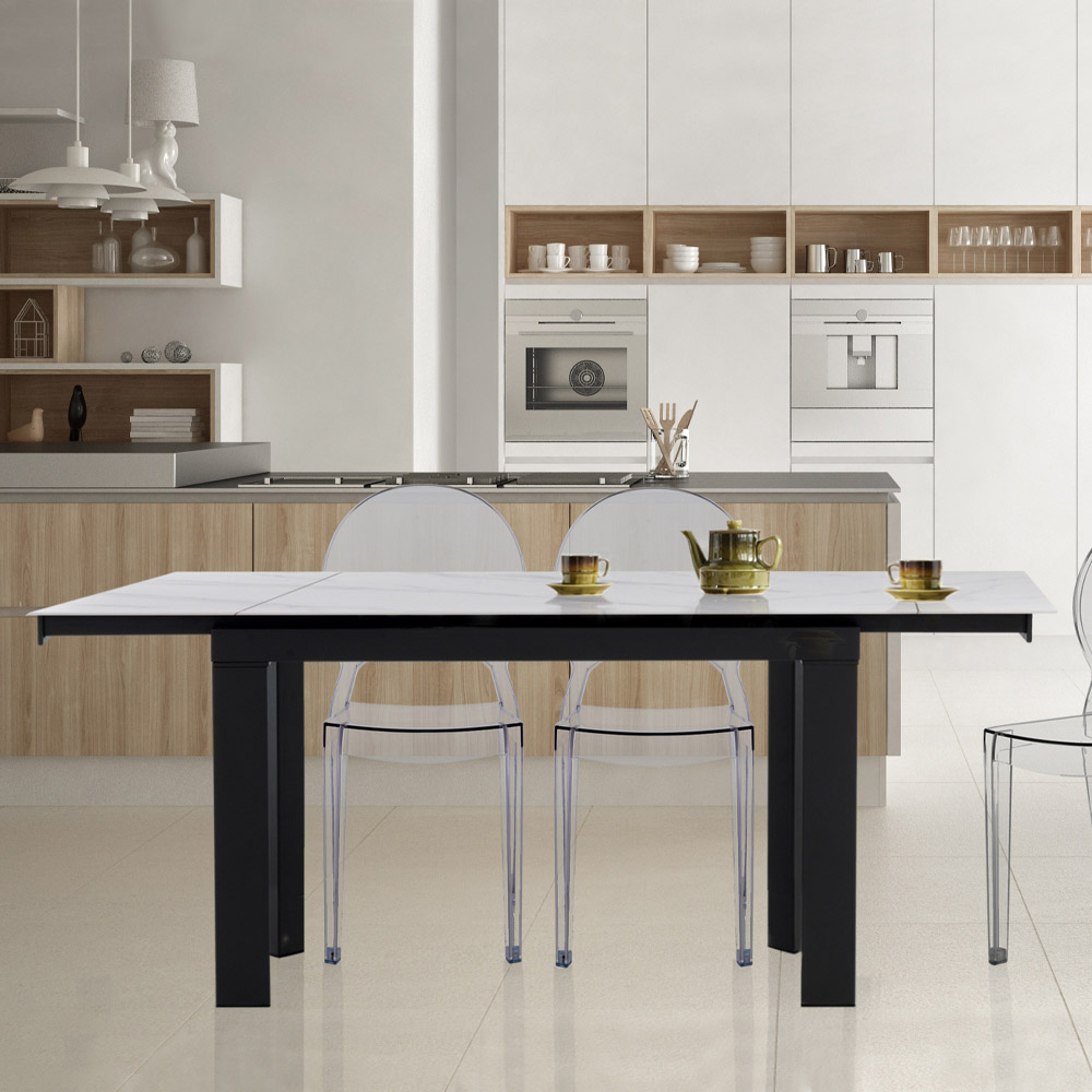 Rozkládací stůl do obývacího pokoje z oceli a keramiky