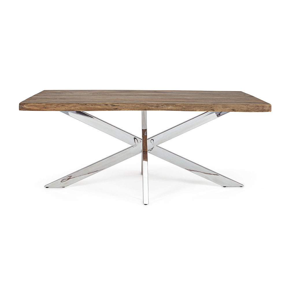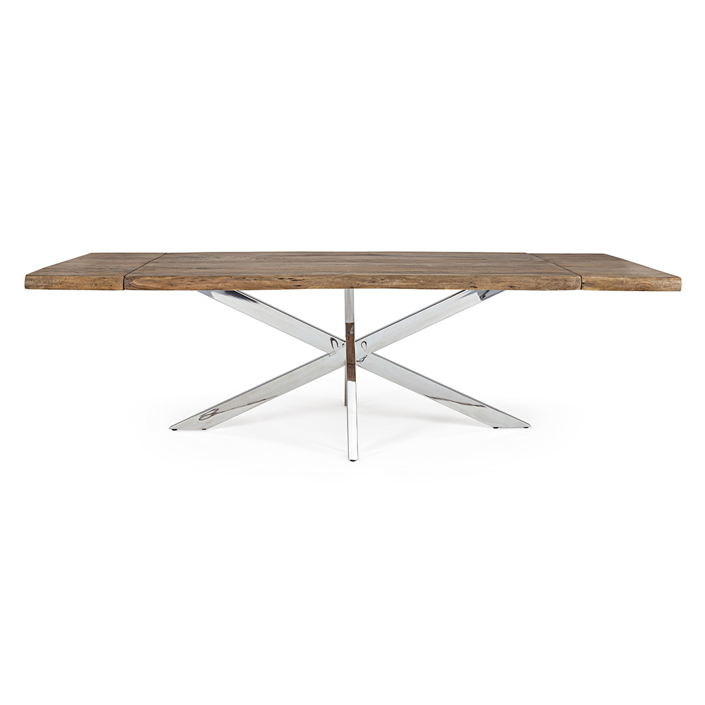 Rozkládací jídelní stůl z masivního akáciového dřeva a ocelové základny, 10 osob.