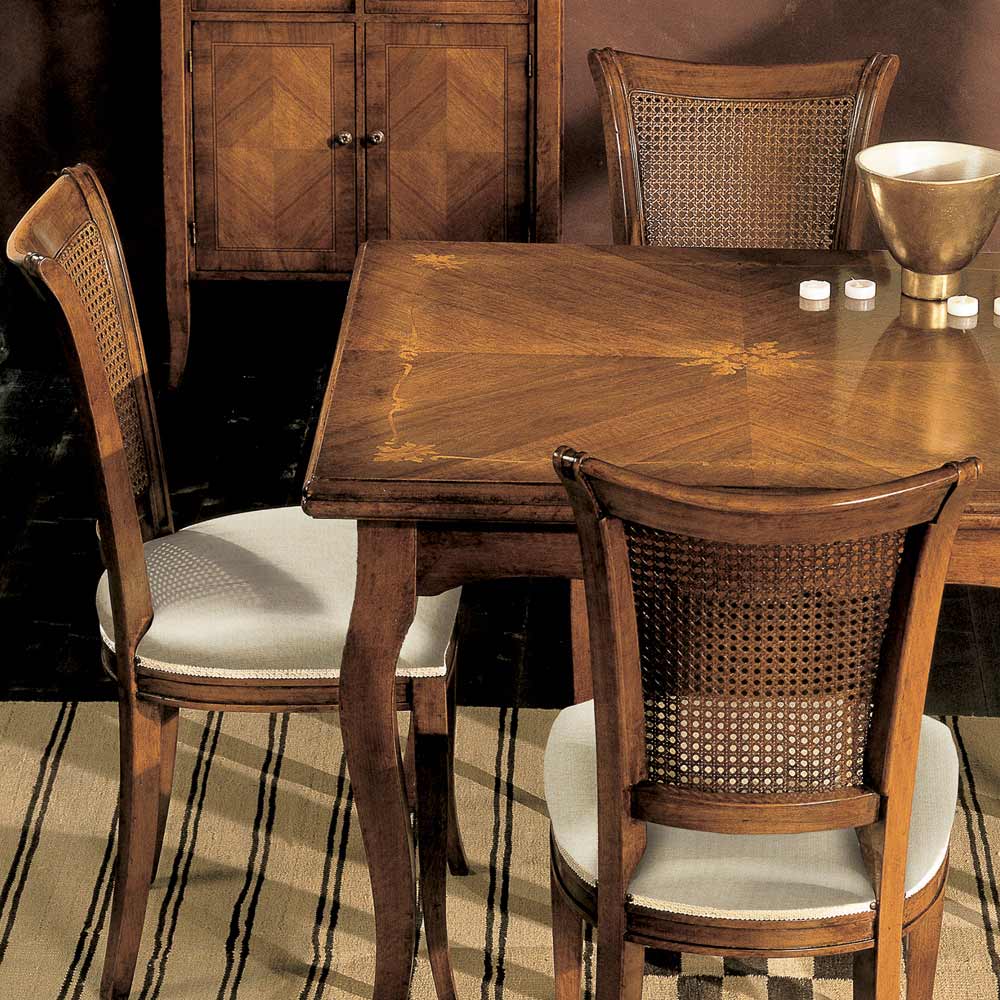 Obývací stůl s rozkládacím otevíráním a 4 dřevěnými židlemi Made in Italy