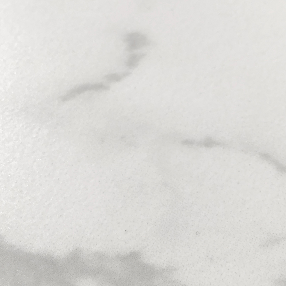 nástavcem umístěným pod deskou stolu z keramiky o tloušťce 6 mm s povrchem z matného bílého mramoru s otvorem "kniha" . úplně