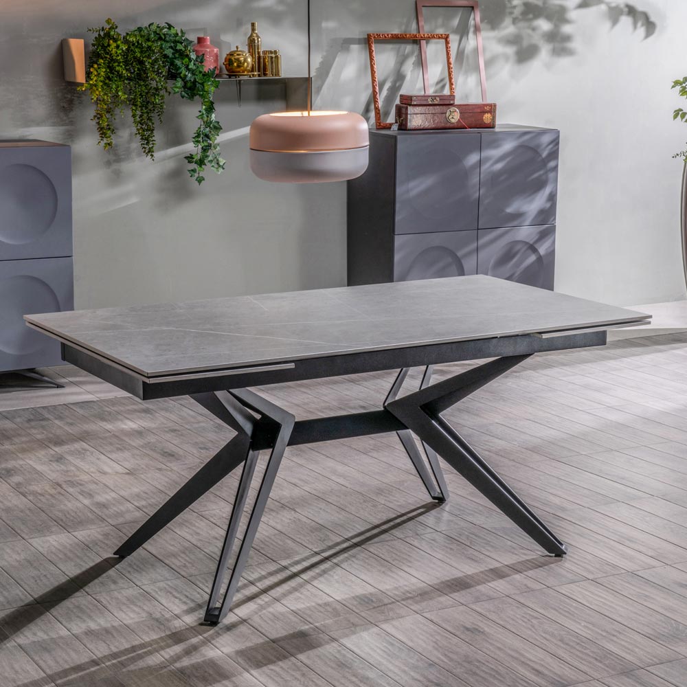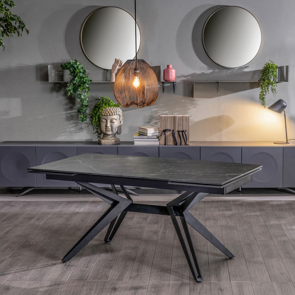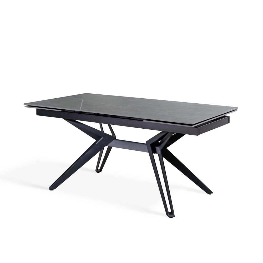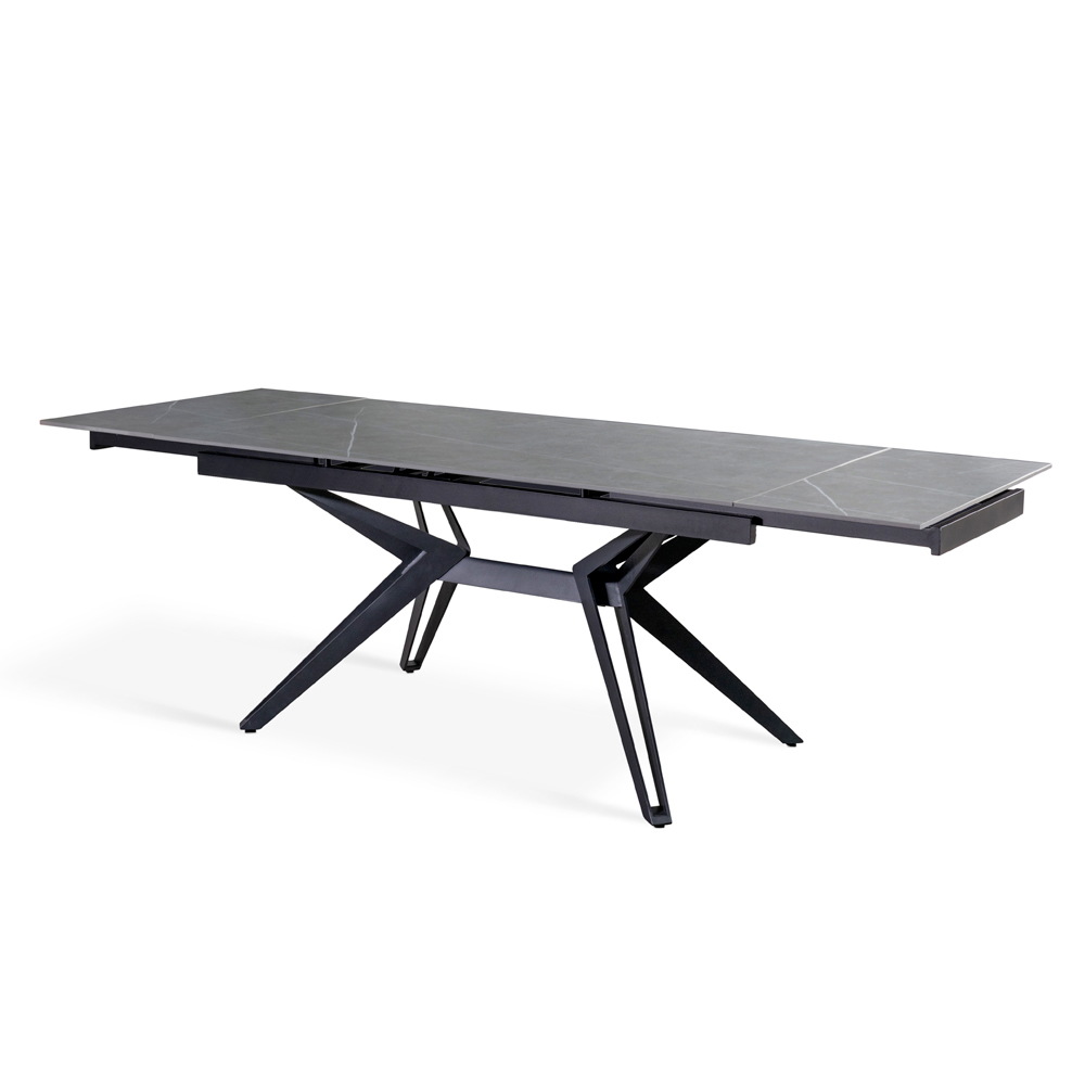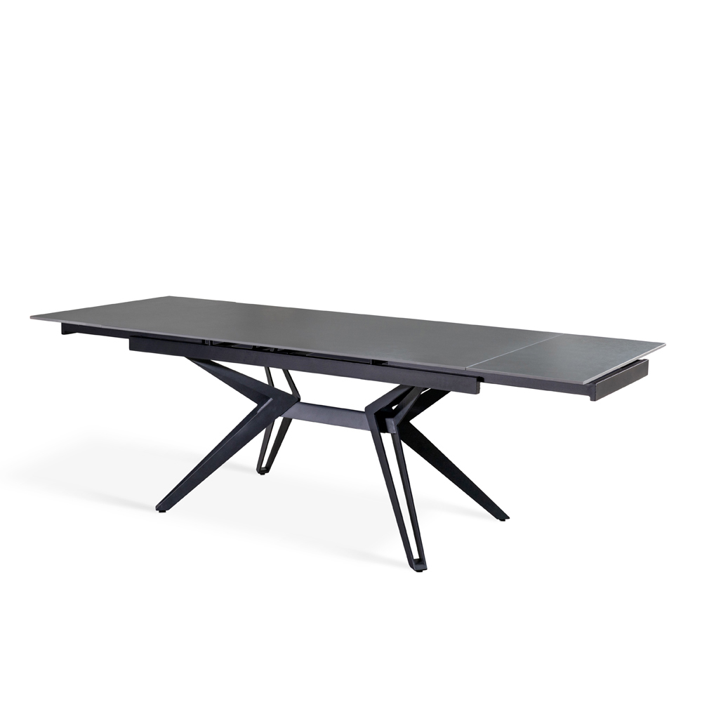 Co přitahuje pozornost, je expresivní síla tohoto rozkládacího stolu v současném a industriálním stylu. Jeho design se vyznačuje elegantní deskou z keramiky, která vkusně ladí s pevnou kovovou základnou. Nabízí mnoho možných kombinací mezi povrchovou úpravou obdélníkové desky a povrchovou úpravou základny, uspokojující osobní výraz a vkus a odrážející ducha kontextu, do kterého je vložena. Díky své rozšiřitelnosti pojme až 10 osob a stává se dokonalým spojencem při vytváření jedinečných a teplých společenských prostor.