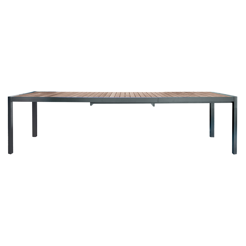 Deska stolu je vyrobena z vysoce kvalitního teakového dřeva , známého pro svou trvanlivost a odolnost proti povětrnostním vlivům. Teak se svými teplými přírodními tóny dodá vašemu venkovnímu prostoru nádech tepla a sofistikovanosti. Pevné, lehké hliníkové nohy nabízejí vynikající stabilitu a odolnost proti korozi, což zajišťuje, že si stůl zachová svou krásu v průběhu času.