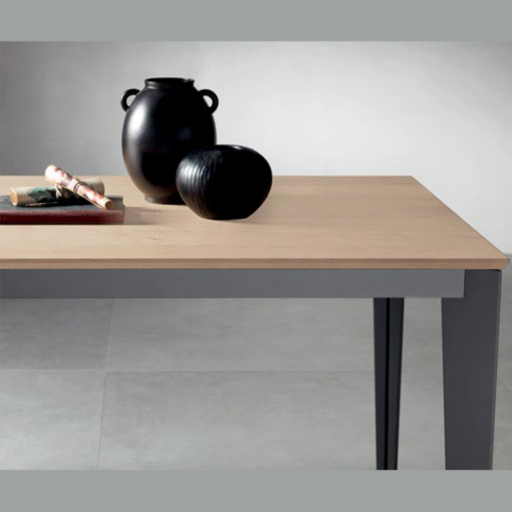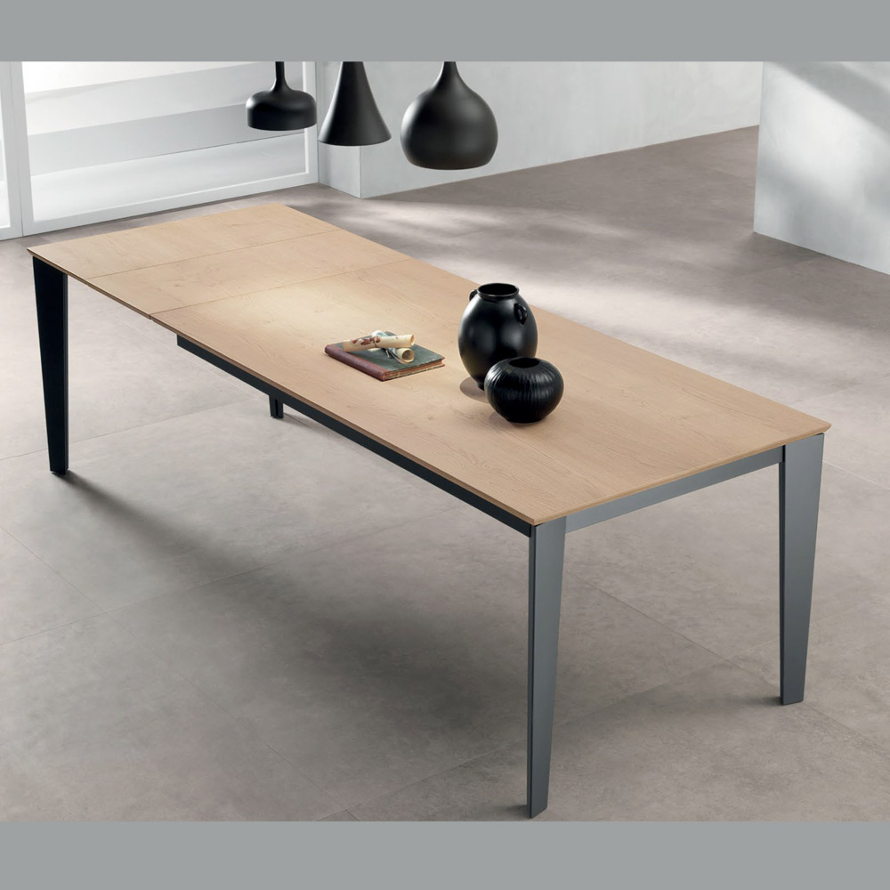 Tento elegantní a funkční rozkládací obdélníkový stůl kombinuje moderní design a praktičnost. Deska z přírodní dubové dýhy o tloušťce 22 mm zdůrazňuje teplou, autentickou kresbu dřeva, zatímco antracitově lakované kovové nohy poskytují stabilitu a moderní nádech.